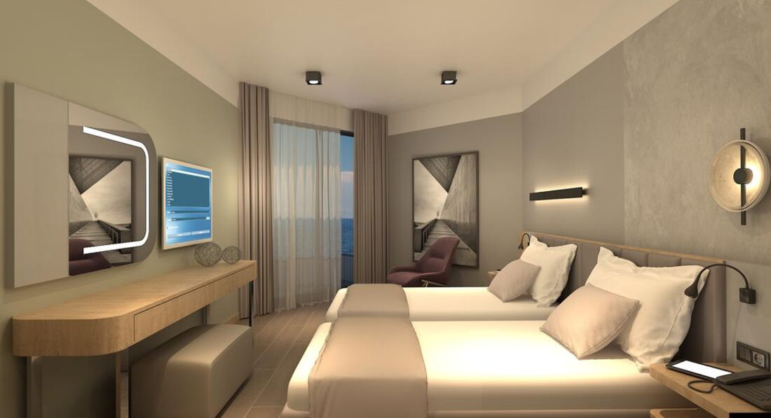 Отдыхали в августе, при заезде принимали на ресепшене плохо, даже 10 евро не помогли при заселении, номера старые, кондиционерам 15 лет, пульты работают через один, телевизоры кинескопные маленькие каналов 10, wi fi не работал даже на ресепшене, пришлось у кафе на пляже подключаться через чужой отель, для детей и родителей анимации вечером нет. Подходит для семейного тихого отдыха, еда хорошая, разнообразная. Пляж в гальке в 30 метрах от отеля ,заранее с утра надо бронировать лежаки.