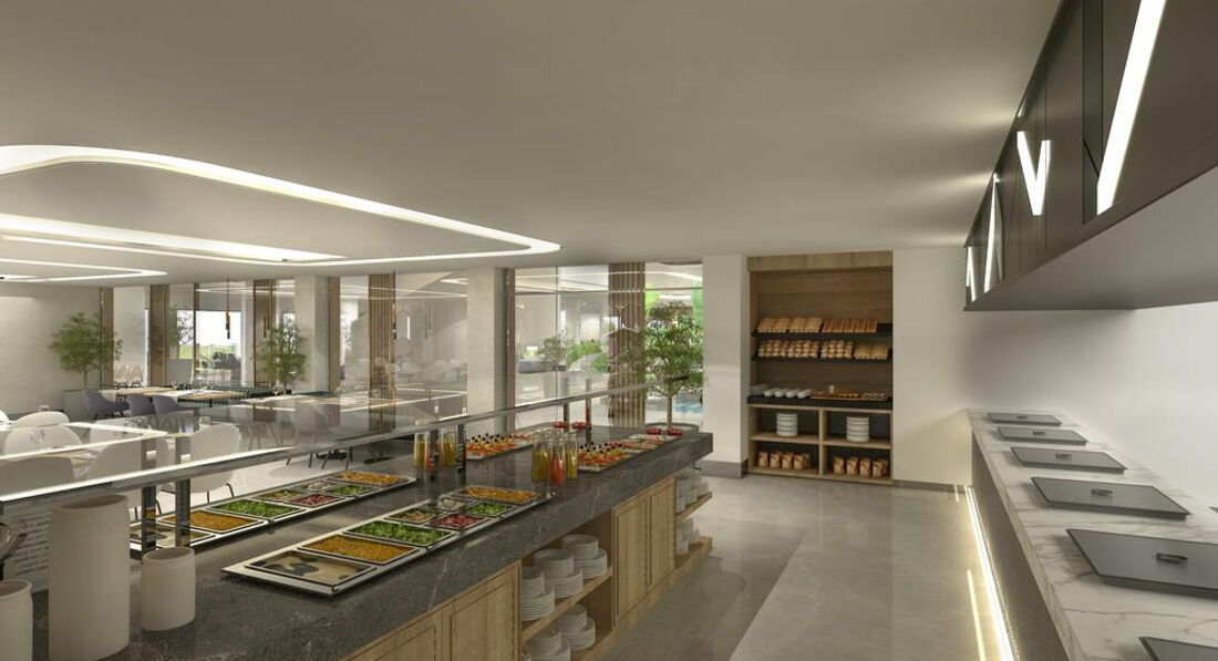 Бари та ресторани: головний ресторан розрахований на 750 осіб (критий, літня тераса, дитячі стільці), Caffe Turk (10:00-23:00), бар біля басейну (10:00-23:00), тераса-бар (10 :00-23:00). Ресторан A la Carte: міжнародний - платно, за попередньою резервацією.