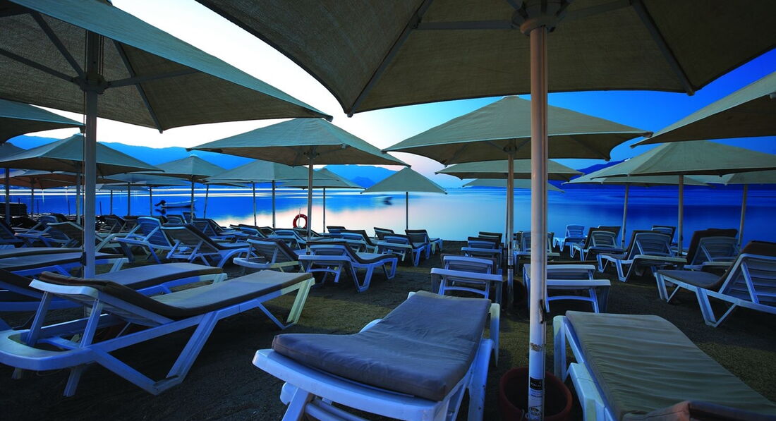 Отдыхали в мае с подругой, в Мармарисе втрой раз и планирую вернуться еще. Брали номер с видом на море в корпусе Beach за небольшую доплату еще в турагенстве, о чем не пожалели.Остальные корпусы находятся на территории сада, а главный корпус Beach или А (там где ресепшн) иммет номера с видом на море и находится ближе всех к морю, столовой и пр. развлечениям, хотя, территория отеля не такая уж и большая. Номерной фонд отеля старый, мебель, ремонт и пр., но, в принципе жить можно. Отель удобно расположен на первой береговой линии, до площади Ататюрка, крытого рынка, фонтанов (в общем, центра) пешком по набережной минут 15-20, до Ичмелера, где чистые пляжи и голубая вода пешком идти минут 40-50, можно и на долмуше доехать за 5 минут. Мы брали велосипеды напрокат, 5 лир в час ( прокат прямо рядом с отелем, выходишь с ресепшена, направо и по левой стороне недорогой прокат) и катались по городу сами, почти каждый день, любовались красотой. Шоу фонтанов начинается в 21.00. Также интересно понаблюдать за фанатами турецкого футбола, что они устраивают на улицах после очередной победы-это нечто, все снимают на телефоны это зрелище)) Экскурсии берите на улице, не бойтесь, торгуйтесь. По шоппингу - лушче шопиться в Outlet магазинах, там цены фиксированные и низкие (если идти от отеля по главной дороге, налево, будет 2 таких центра MGM Outlet по левой стороне и справа еще какой-то. Продукты дешевле в Migros. Деньги мы меняли в супермаркетах, типа Kipa и Migros, даешь доллары, сдачу получаешь в лирах по выгодному курсу. Питание лично для меня было разнообразным, и курица и рыба и мясо и овощи и сладости, все виды алкоголя, коктейли.
