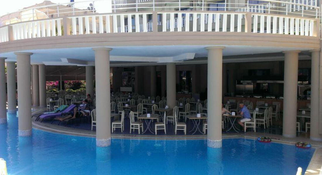Питание. Весьма разнообразное и все свежее. За 10 дней не приелось, потому что всегда можно было выбрать что то новое. Из фруктов правда только апельсины и арбузы были. Отдыхали в Кемере в это же время, выбор фруктов в отеле был больше. Однако складывается ощущение, что наши соотечественники самые голодные и дома едят исключительно омаров, мраморную говядину и черную икру ложками. Да, в Турции не варят борщи и нет свинины, а говядина очень дорогая и в отелях среднего уровня ее не подают. Берите путевки без еды и питайтесь в кафешках, которых уйма в Мармарисе, цены правда не очень либеральные. Из алкоголя понравилось только пиво, вино не пришлось по вкусу, а крепкие не пробовала. Единственное на баре дают один напиток в одни руки, не всегда это удобно. Иногда правда когда нет управляющих бармены могут налить 2 стакана.