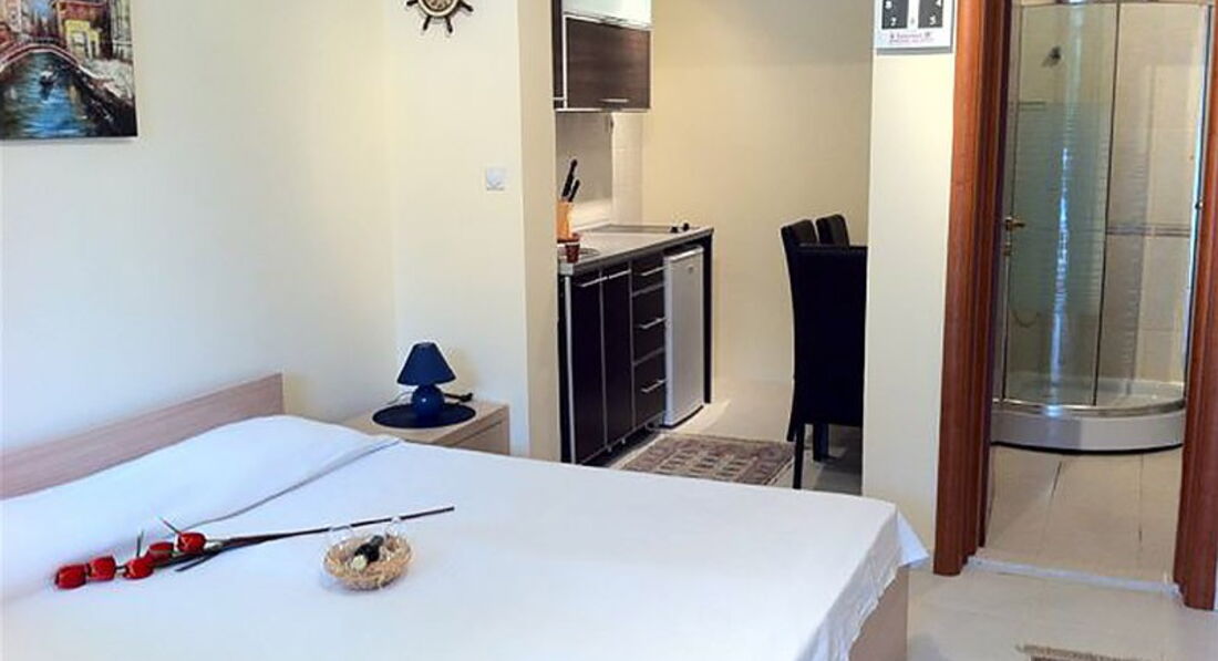STUD 02/Domina (20 кв.м) Спальна та вітальня з розкладним диваном, тераса з видом на море. Максимальне розміщення – 4 особи.