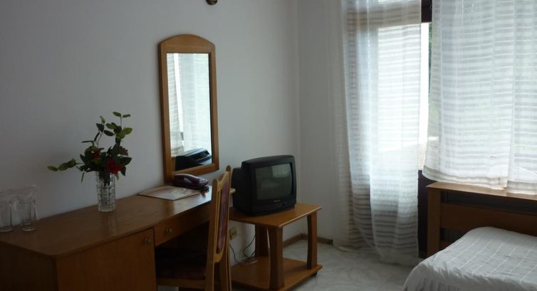 Мебель в номере была стандартная, но не страшная (как указано в некоторых отзывах об отеле). Выселение из номера в 12.00, но можно продлить номер за 40 левов до 18.00. Питание оплачивает в данном случае дополнительно. Анимацией отель не занимается, но нам это было не нужно. Спасибо персоналу отеля за проведенный отдых.