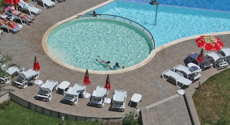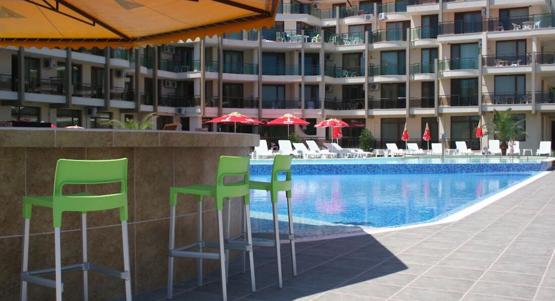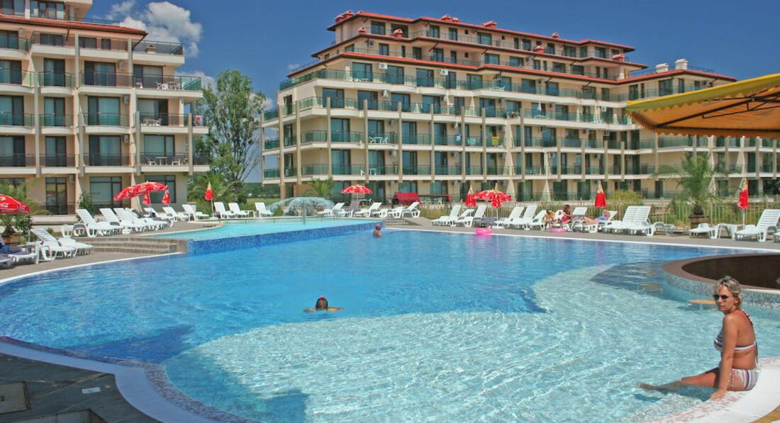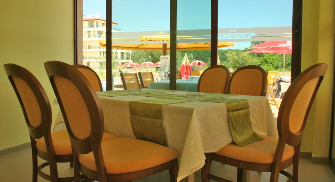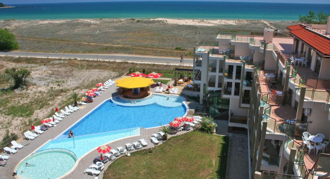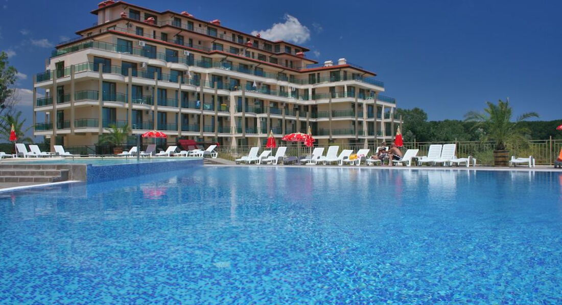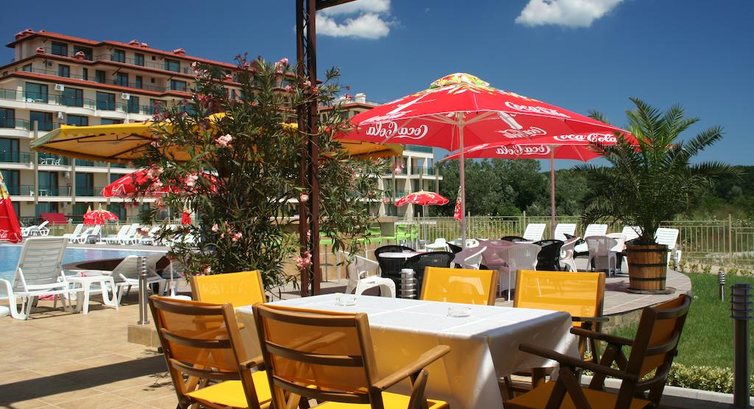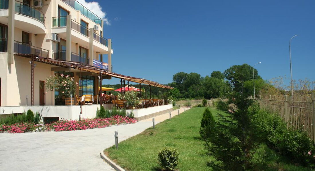 Розташування: у південній частині курортного міста Приморсько, за 70 км від аеропорту міста Бургас, і за 1 км від центру курорту, за 50 м від пляжу.