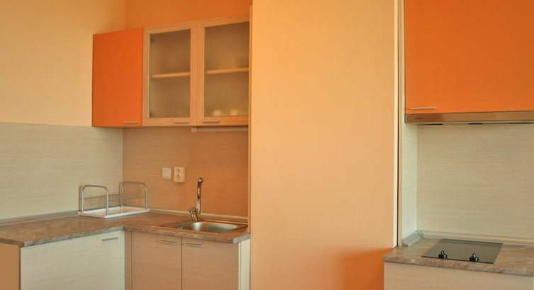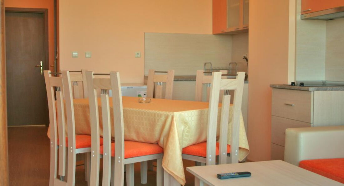Studio та Studio Sea Vew – одна кімната з одним двоспальним ліжком або двома односпальними ліжками та розкладним кріслом, обладнаний кухонний куточок (плита, холодильник, посуд), обідній стіл, макс. 3 дор., 20 м2;