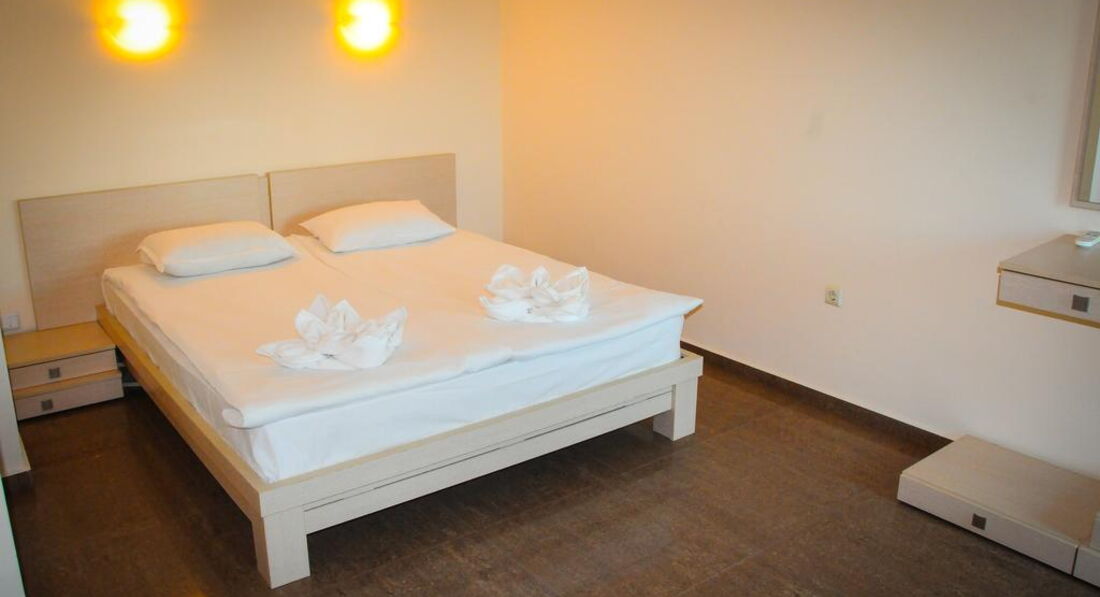 Two Bedroom Apartment та Two Bedroom Apartment Sea View – 2 спальні з одним двоспальним ліжком або двома односпальними ліжками та вітальня з розкладним диваном, обладнаний кухонний куточок (плита, холодильник, посуд), обідній стіл, є суміжні двері, два санвузли з душем та туалетом макс. 4 дор. + 2 дит. або 5 дор., 90 - 130 м2.