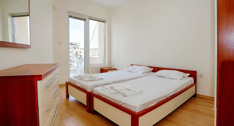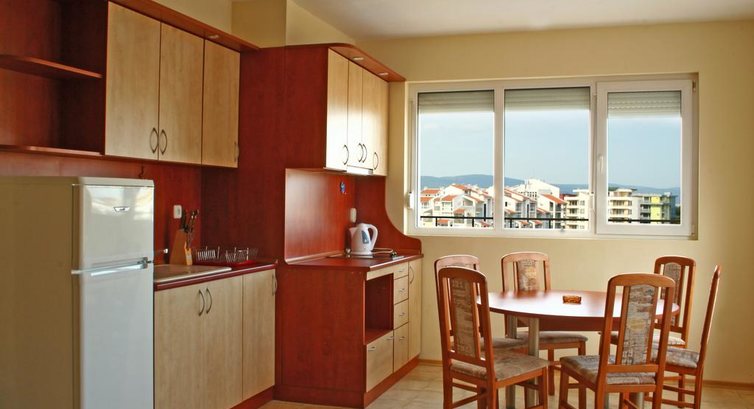 Отдыхали в этом отеле в начале июня вместе с семьей. Начну по порядку. Были в шоке от того, что ресепшен находится в будочке около отеля и юноши абсолютно не разговаривают по русски и с трудом по болгарски. Кое-как поняли друг друга на смеси русского и английского. Номер нам понравился: две комнаты, два туалета, что очень актуально, когда есть дети. Была своя кухня с посудой, чайником, плитой и холодильником. Мы пили только чай, готовить, если честно, было в лом. Убирались так себе, за 11 дней белье сменили 1 раз, но полотенца меняли 3-4 раза. Слив в ванной работает плохо, но это болезнь многих отелей и не только в Болгарии. Еда. Завтраки стандартные: яйца или омлет, огурцы, помидоры, пару видов сыров и ветчины. Мясо гораздо вкуснее, чем в Турции. Есть масло, джем, печенюшки, хлопья. Нам хватало. Обед у нас не был включен. На ужин всегда было два вида мяса, рыба, овощи. Из фруктов давала черешню, сливу, Яблоки или апельсины. Бассейн очень чистый.