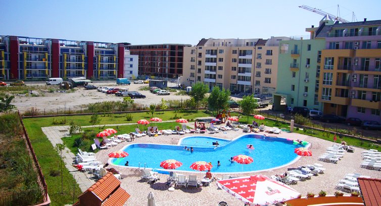 Отдыхали семьей в этом апартотеле 2 недели. Отдых запомнился только чистым морем, песком и речкой Хиджийка, которая впадает в море на твоих глазах. Удивительное сочетание-пресная вода реки и соленое море. Прикольно. А про сам отель ничего хорошего, как и ничего плохого сказать не могу. Купаться в бассейне и играть на площадках, в детских комнатах , теннис ходили в соседний отель. Благо браслетов не одевают, ходи где хочешь, отдыхай. Вообщем, отель - место для ночлега и только. Поскольку мы были с детьми спасала мини-кухня, где в принципе есть все: холодильник, плита, мойка, чайник,посуда. Брали только завтраки, потом питались "дома". Магазинов и рынков там много. До моря идти далековато, точно не первая линия..