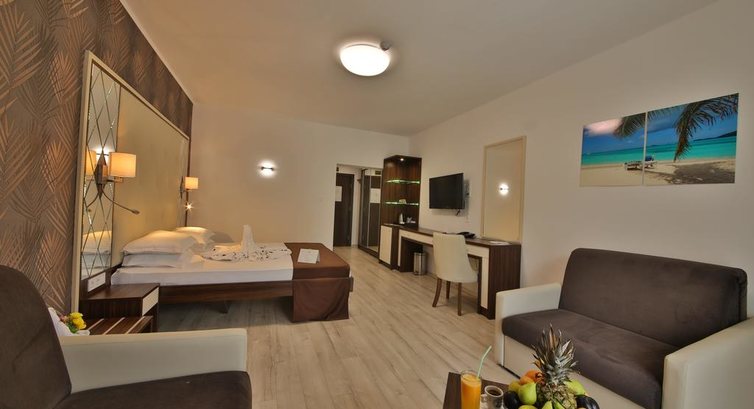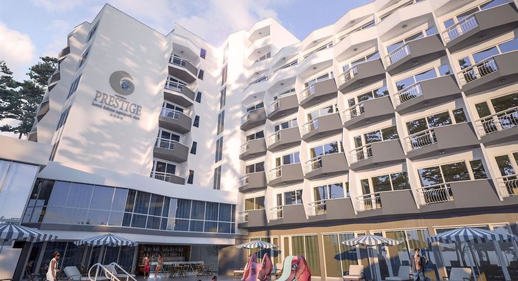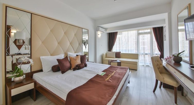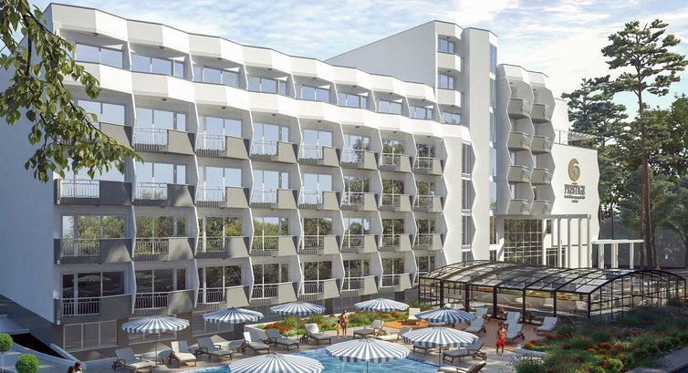 Готель розташований серед пишної зелені поблизу центру курорту Золоті піски. Найближчий пляж знаходиться лише за 350 метрів. Готель збудований у 1957 році, остання реновація проведена у 2018 році. З 2017 року готелем управляє туроператорська компанія «Престиж тревел енд туризм».