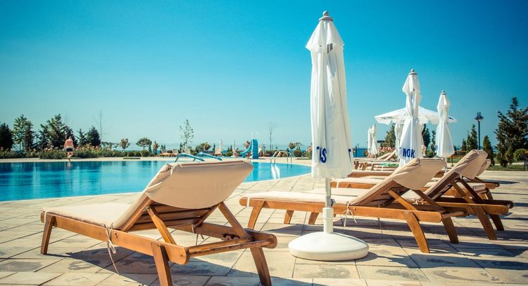 Пляжа здесь нет в принципе. Тину не чистят, подхода к морю нет. Толку оттого, что самый большой бассейн, если он все равно не подогревается? Здесь же не солнце как в турции.