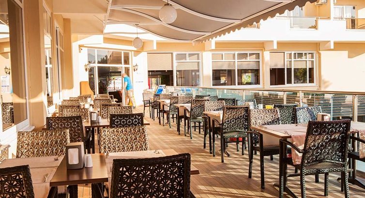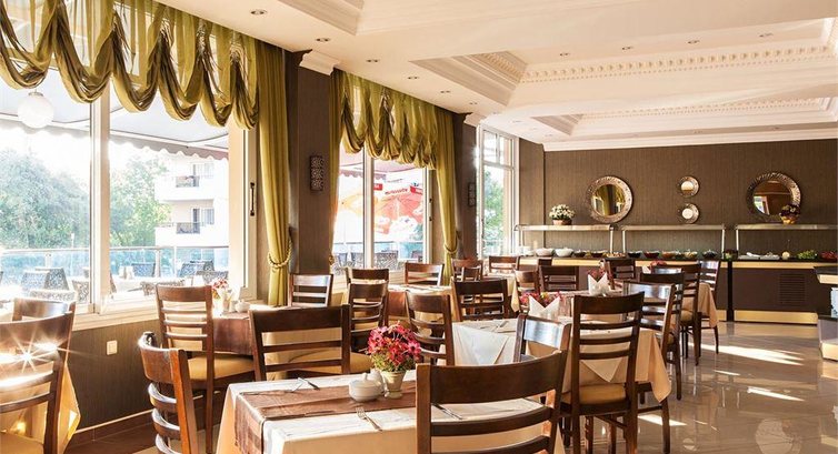 Територія та послуги: • відкритий басейн, 170 кв. • відкритий басейн з гірками, 30 кв.м, 2 водні гірки • основний ресторан • 1 бар • ТВ-салон • інтернет-кафе (платно) • обмін валюти • Wi-Fi (безкоштовно, на території) • оренда автомобіля • медичні послуги • пральня, хімчистка Розваги та спорт: • сауна • фітнес-центр, тренажерний зал • більярд • настільний теніс • турецька лазня платно • масаж платно • перукарня платно • комп'ютерні ігри платно Для дітей: • ліжечко, за запитом • відкритий дитячий басейн, 15 кв. • дитячий візок (платно) Живлення: • BB – лише сніданок: шведський стіл (07.30-10.00), за запитом дієтичне меню. Пляж: Громадський піщаний пляж знаходиться за 200 м від готелю, через дорогу. Шезлонги, парасольки, матраци – платно, пляжних рушників немає. Захід у море – пісок. До оплати приймаються кредитні картки: Visa, MasterCard.