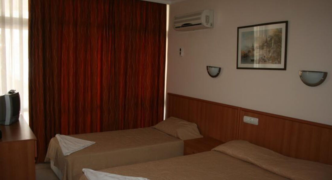 Я никогда не отдыхала в отеле 3 ***, поэтому настроена была на худшее. Заселили нас в старое здание, на 5 этаж без лифта. В комнате был ТВ, кондиционер, холодильник., балкон с видом на море и бассейн. Сантехника исправна. Так как багаж затаскивала на 5 этаж я самостоятельно, персонал не помогал, то и переселяться мне не захотелось, более того оказалось, что в этом здании мы одни и бассейн был только в нашем распоряжении несколько дней. К тому же жильцы с нового здания жаловались на шум машин, у нас же было тихо. Да и если честно, то мне и дочери(16 лет) не мешало бы скинуть несколько килограммчиков, и вряд ли бы мы специально занимались физкультурой, а тут вынужденная обязанность- 5 этаж. По утрам перед завтраком мы успевали поплавать в бассейне, потом шли на завтрак и после в 09-30 уезжали на микроавтобусе на пляж. Обратно в 12-30 .Пляж вызвал восторг: песочек, не было битвы за лежаки и зонтики, персонал всегда показывал наши места, был внимателен. Посторонних мало. На пляж ездили только русские или европейские туристы. Турков, иранцев там не было. Говорили, что в следующую поездку( в 14, возвращение в 16) картина менялась, появлялось много народа на пляже, но мы ни разу в это время не ездили, слишком жарко, поэтому сказать ничего не могу. Рядом с отелем есть спуск на лифте к морю, вход платный- 7 дол, при этом если вышел на минуту, деньги попросят снова. Дальше были спуски к морю бесплатные, но очень крутые. И там глубоко. У нас был оплачен полупансион, поэтому обедать мы ходили в город. Я нашла для себя рыбный ресторанчик, где всегда менялся ассортимент свежей рыбы, дочь -мясоедка, питалась в соседнем. Хозяева быстро к нам привыкли и приносили наш заказ за один столик....А после мы шли плавать в бассейн или гулять. Однажды даже заблудились, так все, у кого мы спрашивали дорогу, потом нас догоняли и спрашивали удалось ли нам ее узнать-очень отзывчивые люди. Вдоль набережной расположено много парков, красивые водопады, по вечерам интересные подсветки. После ужина тоже уходили на прогулку. Никто к нам не приставал, очень много иностранных туристов. Приятно было гулять по старому городу, на пристани много яхт, можно совершить экскурсию по морю. Вернусь к еде в отеле. Меня с дочерью все устраивало, всегда можно было найти, что поесть. Слегка однообразно-это нарекание отдыхающих, но они там и обедали, из фруктов действительно был только арбуз. Но рядом есть маркет, где мы ежедневно покупали фрукты и пили апельсиновый фреш. За ужином хотелось подольше посидеть-пообщаться, но персоналу это явно не нравилось и в итоге они сократили время ужина. Правда следует признать, что в тот момент увеличилось число отдыхающих и прибавилось работы для них. Возможно просто уставали. Номера убирали исправно, гели, мыло, полотенце, белье меняли. Плохое - не понравилась девушка на рецепшине. Не говорит на русском, а когда с ней пытаешься общаться на английском -делает вид, что не понимает или просто отворачивается , всем своим видом показывая, что все ей надоели. К слову она лично меня с ребенком селила на 5 этаж, и с наслаждением лицезрела как я тащу чемодан, заранее не предупредив на какой этаж и не предложив носильщика. Не предупреждала о задержке транспорта, при этом люди стояли на улице под палящим солнцем, выключала кондиционер, когда собирался народ в холле, в общем я бы ее уволила и заменила 