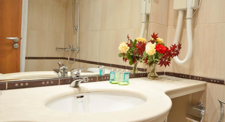 2) Номера небольшие, но места хватает. Ванна стандарт, размеры удобны. Желательно с собой взять фен, так как в отеле фен староват. Недостаток который нужно устранить это то слив, он уже не работает, так что будьте готовы к воде вокруг. Комфортно обставленные номера. Бесплатное однократное пополнение минибара.