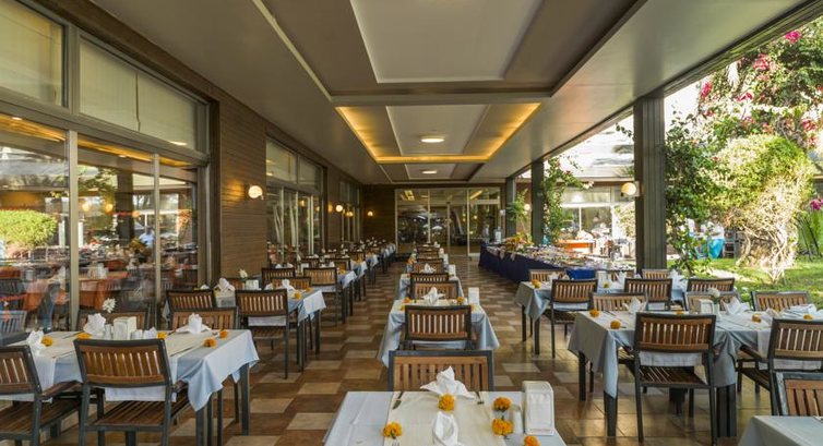 Бари та ресторани: головний ресторан розрахований на 750 осіб (критий, літня тераса, дитяче меню (на запит), дитячі стільці); бар біля басейну (10:00–00:30), бар на пляжі (10:00–18:00). Ресторан A la Carte: Османський – безкоштовно 1 раз за весь час проживання, за попередньою резервацією.