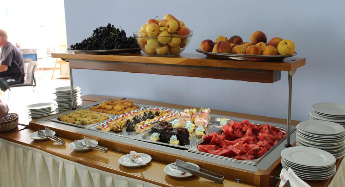 В отеле PrimaSol Синева Парк есть ресторан. На территории отеля есть 2 бара. Один бар находиться около бассейна, другой в холле отеля. Как в ресторане, так и барах всегда чисто и аккуратно. В ресторане отеля работает замечательный персонал. Повар Кенан по утрам готовит очень вкусные блинчики, а в обед и на ужин готовит шашлык, картофель фри и спагетти. Я думаю, что постоянные гости отеля приезжают сюда отчасти и из-за него тоже. Он знает и помнит не только гостей этого, но предыдущих сезонов и всегда им рад. Три раза в неделю в ресторане проводятся тематические вечера. По вечерам есть живая музыка. В ресторане всегда есть 3-4 вида мясных блюд, 2 вида первых блюд, большой выбор салатов и закусок, фрукты в ассортименте, пирожные, свежая выпечка и мороженное. Между обедом и ужином есть супы, пицца, фрукты, пирожные. Всегда есть пиво, вино и другие алкогольные напитки. По желанию вам предложат как алкогольные, так и безалкогольные напитки и коктейли. Чай, кофе есть всегда как в ресторане, так и в барах отеля.