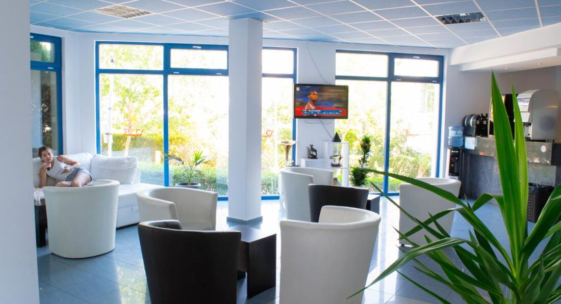 Святой Влас один из самых молодых курортных поселков Болгарии, расположенный всего лишь в 6 километрах от Солнечного Берега. Это живописный и романтический курорт с видом на Несебр. Святой Влас примечателен тем, что в нем приятно сочетается морской и горный климат. PrimaSol Синева Парк это комфортабельный 3-этажный отель на 92 номеров, построенный в 2001 году. Большинство номеров имеют вид на море или бассейн, расположенный в красивом внутреннем дворе. Разместили нас сразу, хотя в турагентстве нас предупреждали о том, что размещение будет после 2 часов. На первом этаже отеля есть бесплатный WI-FI, а на 2-м этаже есть компьютер с доступом в интернет. Сам отель очень чистый, территорию отеля каждый утро убираю, чистят бассейны, поливают газон и цветы.