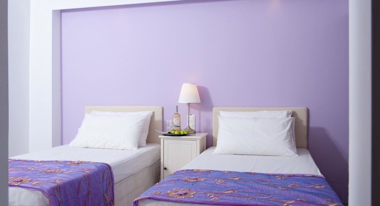 Типи номерів: 5 Double Room (20 кв.м, одна спальня, балкон/тераса) 4 Triple Room (30 кв.м, складається зі спальні та вітальні зони (міжкімнатні двері не у всіх номерах), балкон/тераса). Quatruple room (40 кв.м) макс. розм. 4 чол, складається зі спальні та вітальні (міжкімнатні двері не у всіх номерах), балкон/тераса.У номері: душ банні приналежності фен індивідуальний кондиціонер (платно, 6 євро на день) супутникове ТБ (є російські канали) міні-бар (платно) електрочайник кухонний куточок з електричною плитою (не у всіх номерах) міні-холодильник (безкоштовно) чай, кава, цукор wi-fi (платно) сейф (платно) балкон/тераса