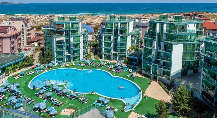 Колишній готель GRAND HOTEL PRIMORSKO 4*. Готель з нестандартною архітектурою та просторими номерами. Знаходиться в тихому місці, дорога на пляж проходить через дюни. Підходить для спокійного відпочинку.