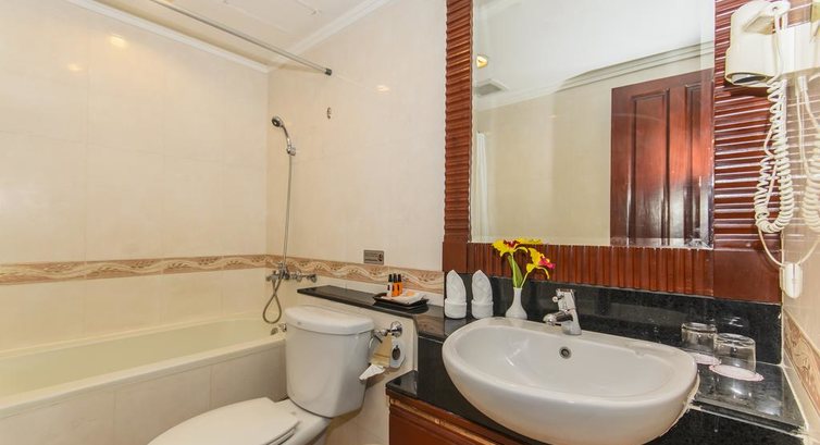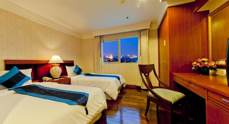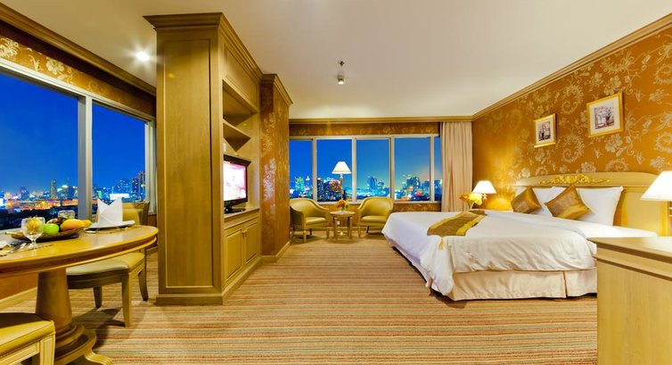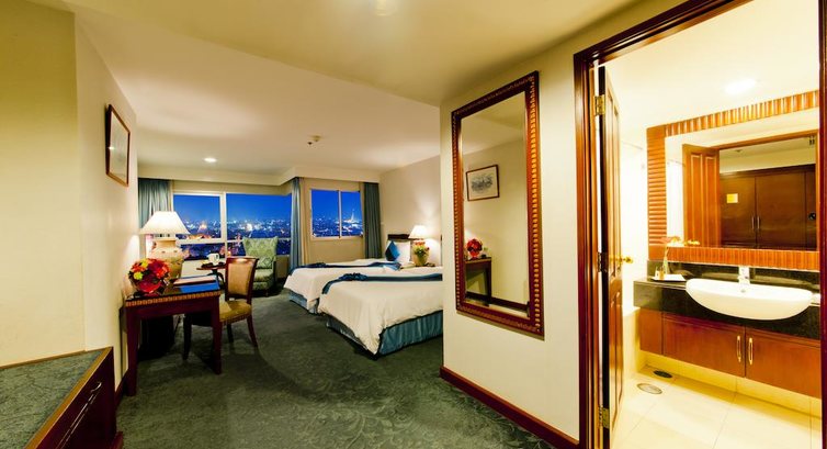 Ночевали в данном отеле 2 ночи, по пути на остров Чанг и обратно, перед вылетом в Россию. По сравнению с отелями однодневками, в которых мы ночевали в Камбодже и во Вьетнаме ( Нячанг) этот безусловно лучший, отель с претензией на пафосность, все дорого/богато, но это только на первый взгляд. Мебель старая пошерпанная, кондер работает плохо, окна грязные и не открываются, сантехника в плохом состоянии. Завтраки очень приличные и разнообразные, Вай фай бесплатный только на ресепшн , на крыше интересный бассейн и ресторан. В самом ресторане дорого и невкусно( . Расположение удачное относительно достопримечательностей и от аэропорта ехали не долго. Самый недорогой номер довольно большой, двухкомнатный, гостиная и спальня, есть все необходимое. Рекомендую для 1-2 ночей, на более долгое время можно поискать вариант поприличнее