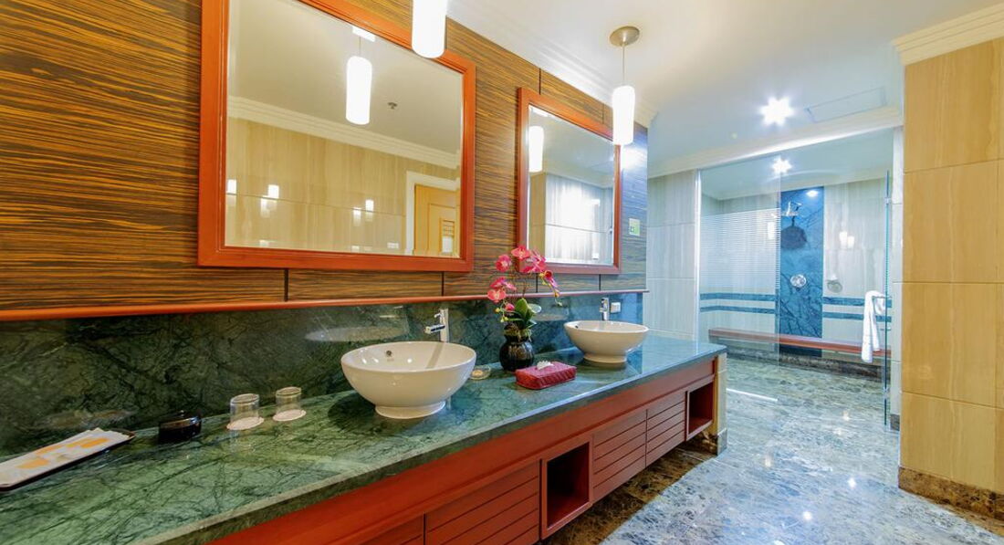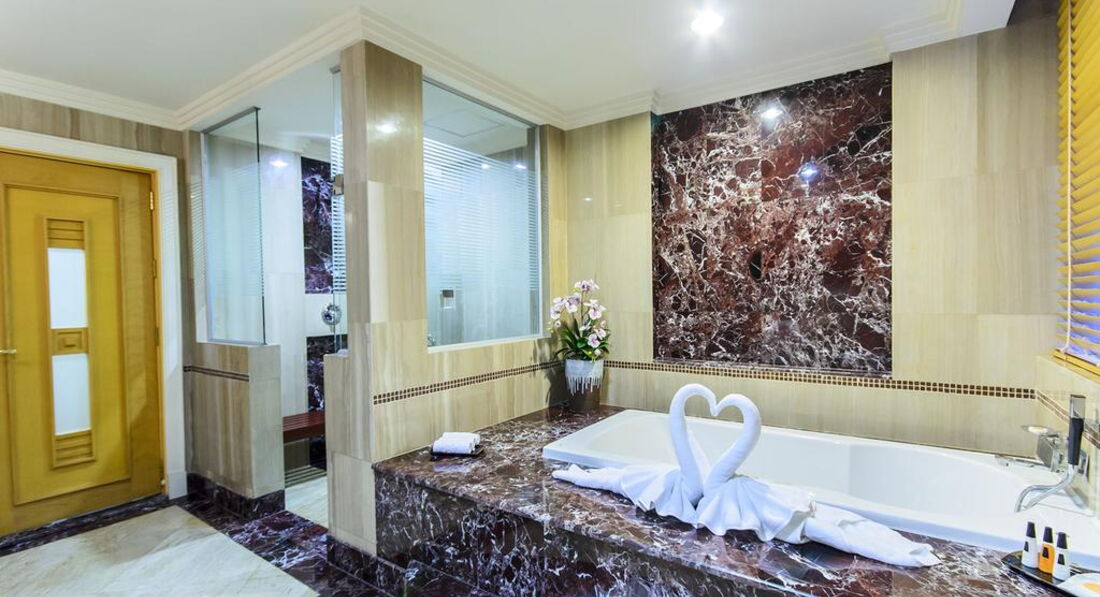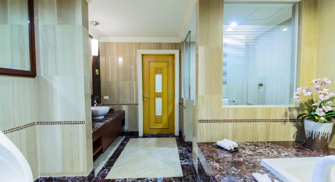 Типи номерів: Superior Room One Bedroom Suite Two Bedroom SuiteУ номері: Центральний кондиціонер Сейф ТБ Wi-Fi Телефон Фен Міні-бар Холодильник Халат і тапочки Банні приналежності Чайне приладдя Електричний чайник