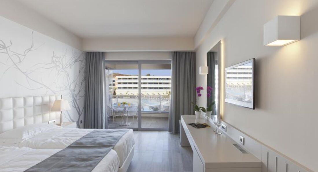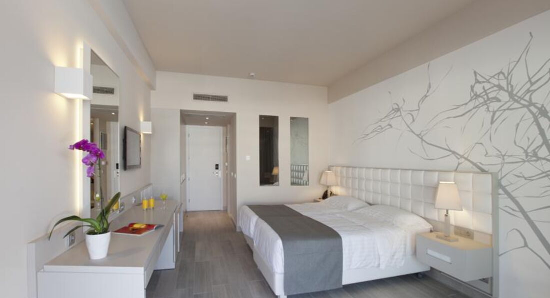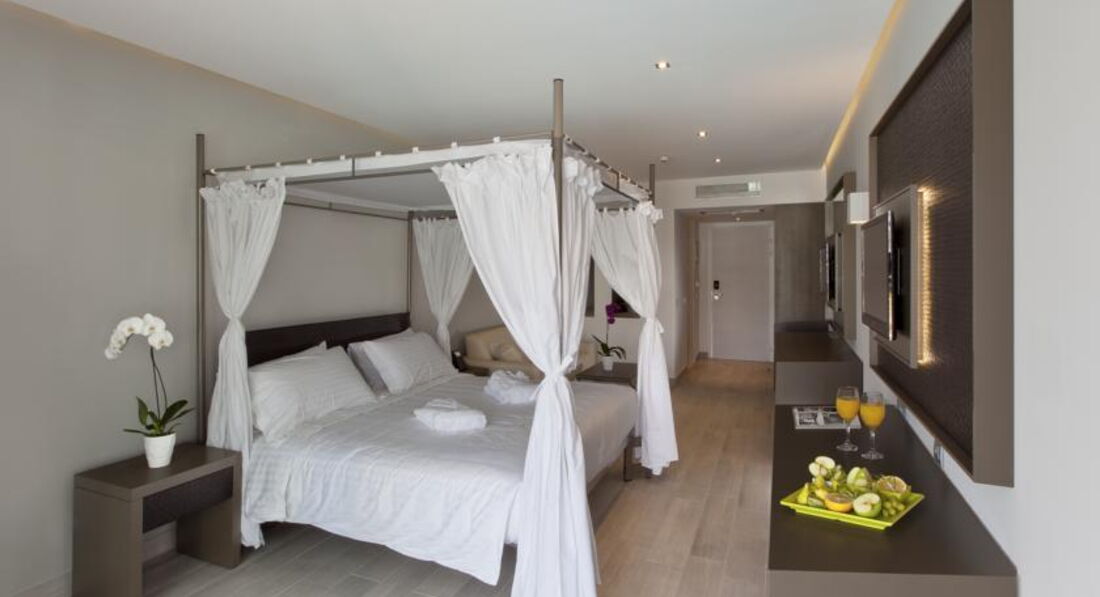 junior suitе (перебувають у частині готелю, розташованої ближче до моря, на другому поверсі, однокімнатний номер, осн. ліжко — king-size, дод. – софа (односпальне за запитом), макс. 3+1 чол., 32м2);