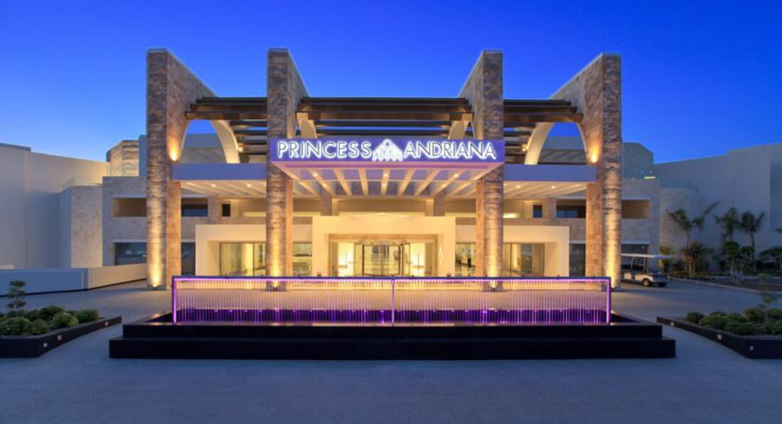 Готельний комплекс із комфортабельними номерами. Сучасні стильні інтер'єри приміщень, добре обладнаний тренажерний зал та дитячий майданчик. Територія готелю ділиться на дві частини: одна розташовується на невеликому височінні, а друга - на першій береговій лінії. Перехід з однієї частини на іншу відбувається за коротким обладнаним тунелем. Ресторани готелю пропонують широкий вибір харчування в рамках програми "все включено", у снек-барі гості комплексу можуть знайти різноманітні закуски та напої до пізнього вечора. Прямо поза готелю проходить променада з магазинами, супермаркетами, є кілька нічних клубів. У вечірній час на території готелю проводяться анімаційні шоу-програми на міжнародних мовах, а вечеря приємно доповнюється нетривалим шоу фонтанів, що співають під розслаблюючу музику. Готель PRINCESS ANDRIANA RESORT &SPA є найстильнішим готелем, що пропонує концепцію "все включено". Універсальний готель для сімей та романтичних пар.