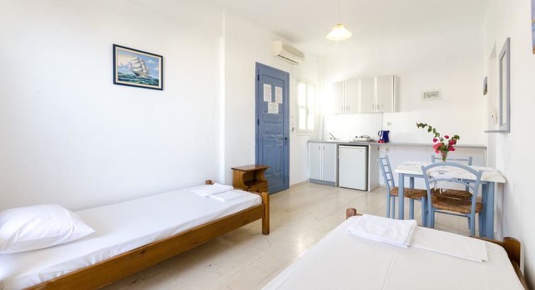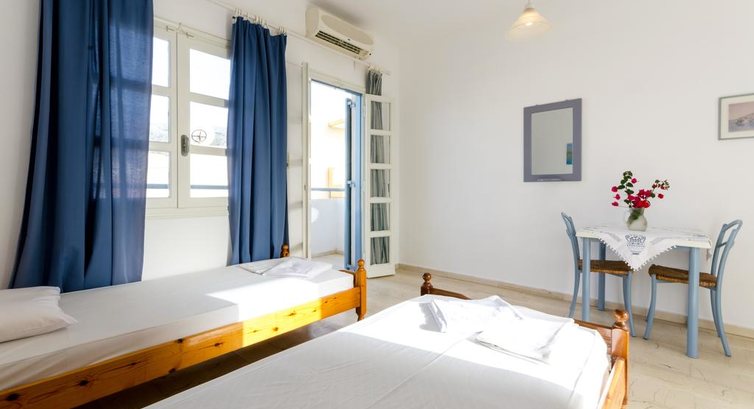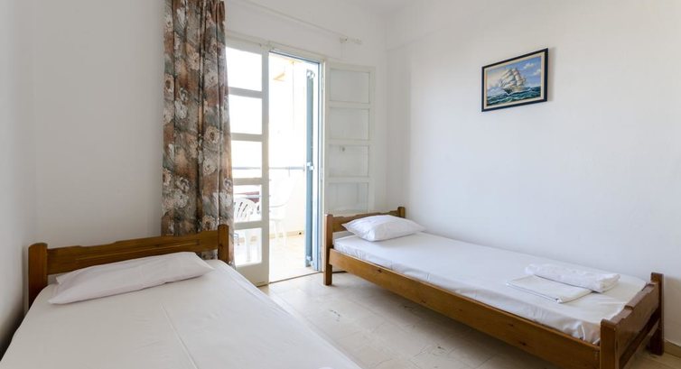 Типи номерів: • 2 Studio (27 м2, вид на басейн, макс. розм. 2 чол., спальня, ванна, обладнаний кухонний куточок, балкон) • 4 Apts (40 м2, вид на басейн або море, макс. розм. 4 чол., спальня, вітальня, міжкімнатні двері, обладнаний кухонний куточок, ванна)У номері: • душ • кондиціонер-спліт (платно) • електрочайник • міні холодильник • праска та прасувальна дошка (за запитом) • стіл і стільці