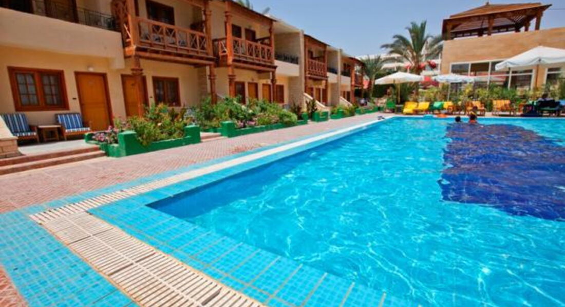 Подробно для впервые посетивших Египет (как я): номер у нас был в центральном корпусе на 2-м этаже, с балконом "во двор". Номер грязный, раздолбаный, в колониальном стиле, сами все вытерли влажными салфетками, в душ - только в шлепках. Стоки в душе и умывальнике забиты, но эту проблему решили после разговора с гидом. Постель и полотенца "средней свежести". Уборку в номере ни разу не делал никто за 6 дней, на просьбу выдать туалетную бумагу уборщик начал приставать к подруге. В целом в отеле заметны "остатки былой роскоши" (сняли пол-звезды из-за старости), но селятся там в основном арабы, славян мало. Питание нам, как барышням, показалось вполне. Маловато выбора салатов и фруктов (давали только дыню и финики), но в целом здоровая еда, много бобовых, заправка - растит.масло или жидкий хумус, завтрак скудноват, зато на обед и ужин на выбор курица, говядина (тефтели или кюфта) и рыба (скумбрия или пангасиус). Очень вкусный творог с желе, неплохая выпечка, даже торт и пахлава. Напрягали одноразовые стаканы, даже для кофе, и бешеные очереди за едой. Иногда после арабов, которые, кстати, едят просто дикими порциями, почти ничего не оставалось. В баре не брали ничего, от местных разбавленных напитков низкого качества многие жаловались на расстройства, просто привезли по бутылке своего коньяка. Несмотря на "ол-инклюзив", вода только стаканчиком из кулера, сами покупали 5-литровыми бутлями в лавке рядом с отелем. Персонал замотанный, если начинаешь разговор с жалобы или претензий - отмораживаются. Территория большая, два сильно хлорированных бассейна - лягушатник для детей и большой, в котором постоянно сидят арабы. На территории много красивых растений, кактусы и финиковые пальмы. Пляж собственный, до него идти 5 минут, мелкий песчаный вход в воду, но в бухте постоянно стоят яхты и воняет бензином. Взяли одну экскурсию на яхте по морю (на целый день) - неудачно вывихнула плечо после катания на банане. Не рискуйте здоровьем, берите экскурсии у гида, а не у местных, иначе никто за вас ответственность не несет, и медстраховка не действует!!! Остальное время сами гуляли по Хургаде, посетили несколько местных клубов. Рекомендую Papas Beach Club на набережной, и Little Buddha. От отеля нас возили на шоппинг в магазины кожи-меха, на завод масел El Baraka natural oils (в шоу-руме дорого, но можно торговаться), в сувенирный и текстильный магазины. Качество сумок и шмоток среднее, зато можно сбить цену в 2 раза!!! Ювелирка в Египте тоже своеобразная, грубая и дорогая. И, главное, аборигены: барышням без провожатого ходить по улице не стоит! Повышенное внимание, а иногда и домогания обеспечены. Многие ведут себя, как животные - трутся об вас, пытаются хватать за выступающие части тела, и т.д. Смело посылайте. К счастью, среди них есть и вполне адекватные ребята. И не садитесь в машины, только в такси (черное с оранжевым), их много, и проезд не дорогой (1-3 доллара). Фрукты и другую мелочь покупайте в супермаркетах - там дешевле, чем на лотках и в лавках. Итог: в Египте есть чем заняться как семейным, так и молодежи. Страна яркая, природа и культура специфичные, сами арабы большие вруны и хитрецы. Отель паршивенький, но в целом мне поездка понравилась.