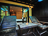 Большая веранда, на которой из за комаров не посидишь, зато есть своя стойка - сушилка для купальников и полотенец.