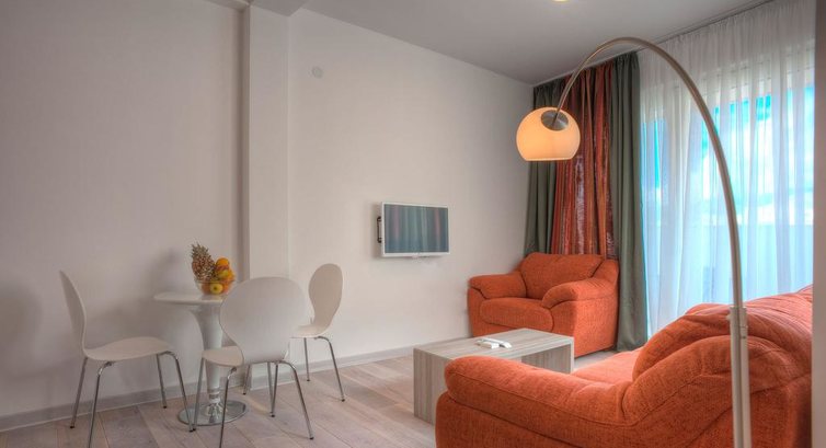 B STUD 02+1 SV (36 м2): французьке ліжко, софа, повністю обладнана кухня, кондиціонер, супутникове ТБ, Wi Fi інтернет, міні-бар, сейф, санвузол з душовою кабіною, балкон з видом на море. Максимальне розміщення 3 особи.