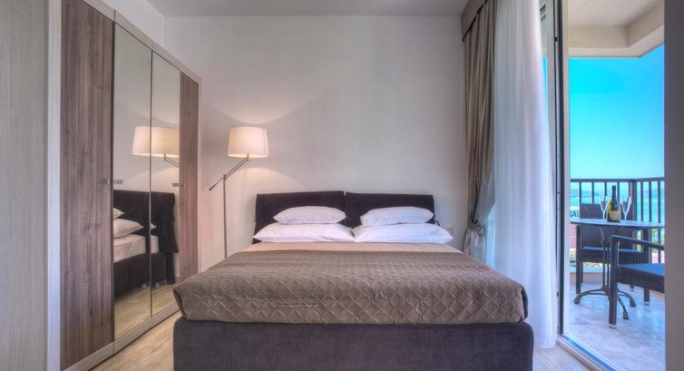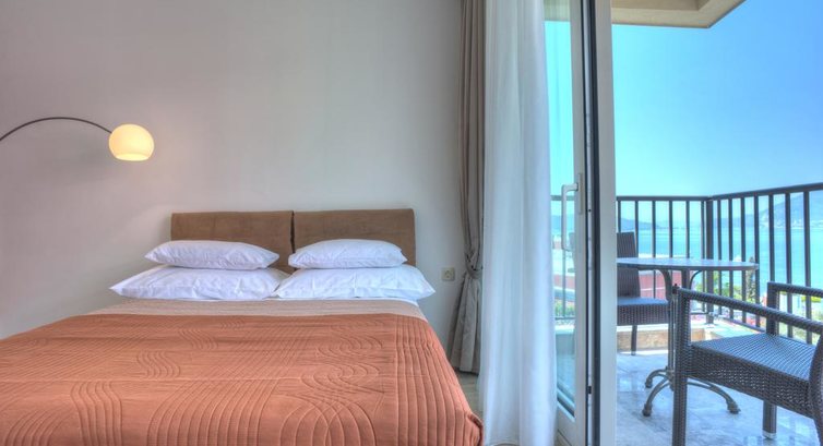 B DBL SV big (22 м2): французьке ліжко, кондиціонер, супутникове ТБ, Wi Fi інтернет, міні бар, сейф, набір для приготування чаю та кави, санвузол з душовою кабіною, велика тераса з видом на море. Максимальне розміщення 2 особи.