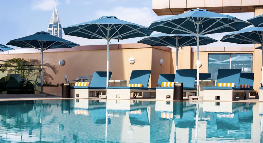Територія та послуги: • відкритий басейн, що підігрівається; • ресторану Manzoni; • ресторан "La Vue"; • лобі-бар "Ahlan"; • бар "Amarillo"; • бар біля басейну; • паркування; • бізнес центр; • 9 конференц-залів; • Wi-Fi доступ до інтернету; • послуги факсу та ксерокопіювання; • послуги хімчистки, прасувальної; • обмін валют; • система пожежної безпеки; • цілодобова охорона; • система відеоспостереження. Розваги та спорт: • спа-салон з чудовим видом на місто; • фітнес центр; • сауна; • хамам; • джакузі; • масаж; • катання на лижах (оренда обладнання). Для дітей: • послуги няні (за запитом); • дитяче ліжечко. Живлення: • сніданки Пляж: Відкритий муніципальний пляж «Jumeirah Beach» розташований за 1,5 км від готелю.