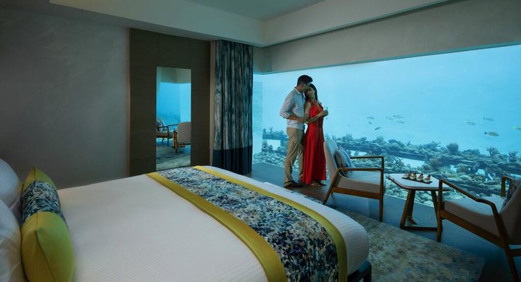 • 1 Royal Suite (567 м2; макс. 10 або 8+2+1 infant). Двохрівнева водна вілла з 4 спальнями (дві з ліжками king-size; дві з окремими ліжками twin), 2 вітальні, невелика кухня, кімната для проведення спа-процедур, міні-тренажерний зал, тераса з приватним басейном. Послуги персонального батлера та шеф-кухаря, електромобіль баггі