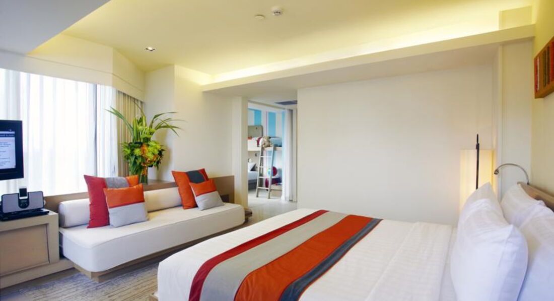 10 Family Suite (бічний вид на море, спальня та дитяча спальня з двоярусним ліжком, привілеї Executive Club, макс. 2+2 чол., 48 м²);