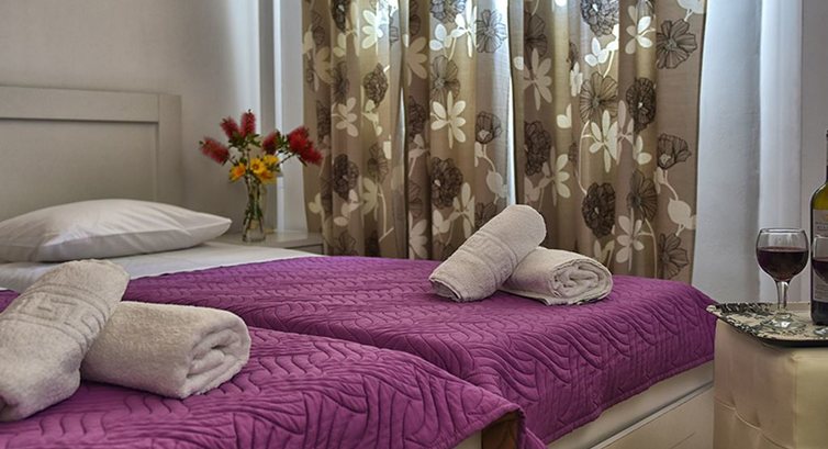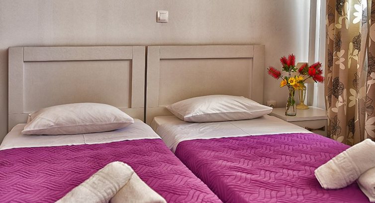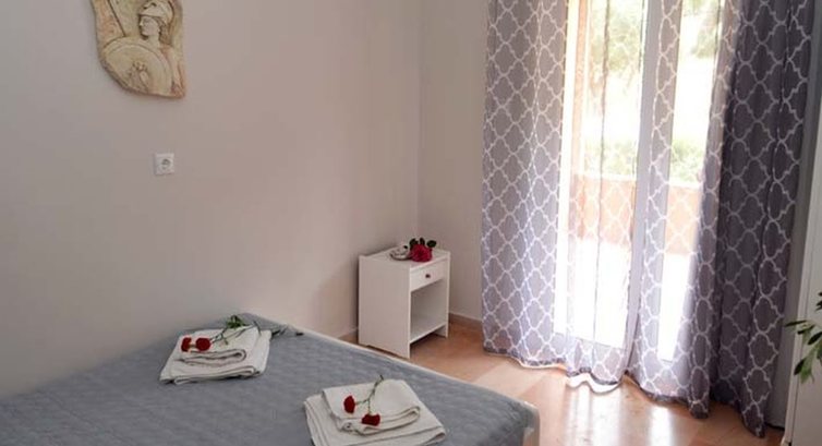 Усього 9 номерів. Типи номерів: Studio Artemis (~35 кв.м) Обладнана кухня, холодильник, 2 односпальні ліжка (об'єднані), диван (для 3 людини). Кондиціонер, балкон з видом на море, супутникове ТБ, безкоштовний Wi-Fi інтернет, ванна кімната (душ), праска та прасувальна дошка, зміна постелі – 1 раз на тиждень, зміна рушників – 2 рази на тиждень. Studios Apollon (~35 кв.м) Обладнана кухня, холодильник, 2 односпальні ліжка (об'єднані), диван (для 3 людини). Кондиціонер, балкон, супутникове ТБ, безкоштовний Wi-Fi інтернет, ванна кімната (душ), зміна постелі – 1 раз на тиждень, зміна рушників – 2 рази на тиждень. Studio Hermes (~45 кв.м) Вітальня, диван, обладнана кухня та столова зона відкритого планування, холодильник, спальня з двоспальним ліжком, кондиціонер, великий балкон, супутникове ТБ, безкоштовний Wi-Fi інтернет, ванна кімната (душ), зміна постелі – 1 раз на тиждень, зміна рушників - 2 рази на тиждень. Studio Eros (~28 кв.м) Кухня, холодильник, диван, спальня з 2-ма односпальними ліжками (об'єднаними), балкон, праска та прасувальна дошка, кондиціонер, супутникове ТБ, душ, безкоштовний Wi-Fi інтернет, зміна постелі – 1 раз на тиждень, зміна рушників – 2 рази на тиждень. Apartments Hera (~55 кв.м) Кухня та столова зона, холодильник, 2 окремі спальні (в одній – двоспальне ліжко, в другій – 2 односпальні ліжка. Веранда, ванна кімната (ванна, душ), праска та прасувальна дошка, кондиціонер, супутникове ТБ, душ, безкоштовний Wi-Fi інтернет, зміна постелі – 1 раз на тиждень, зміна рушників – 2 рази на тиждень. Apartments Hercules (~40 кв.м) Розташовані на першому поверсі (ground floor), кухонний куточок, холодильник, диван, 2 спальні, веранда, ванна кімната (душ), праска та дошка для прасування, кондиціонер, супутникове ТБ, душ, безкоштовний Wi-Fi інтернет, зміна постільної білизни – 1 разів на тиждень, зміна рушників – 2 рази на тиждень. Apartment Afrodite (~75 кв.м) Двохрівневі апартаменти. Кухня та вітальня відкритого планування на нижньому поверсі, диван, столова зона, холодильник, 2 спальні, ванна кімната (ванна), веранда, ванна кімната (душ), праска та прасувальна дошка, кондиціонер, супутникове ТБ, душ, безкоштовний Wi-Fi інтернет , зміна постелі – 1 раз на тиждень, зміна рушників – 2 рази на тиждень. Apartments Achilleas (~75 кв.м) Двохрівневі апартаменти. Кухня та вітальня відкритого планування на нижньому поверсі, диван, столова зона, холодильник, 2 спальні, ванна кімната, веранда, ванна кімната (душ), праска та прасувальна дошка, кондиціонер, супутникове ТБ, душ, безкоштовний Wi-Fi інтернет, зміна постелі білизни – 1 раз на тиждень, зміна рушників – 2 рази на тиждень. Αpartment Sofia (~76 кв.м) Апартаменти розташовані окремо від комплексу (100 м), ближче до моря - в 10 м від моря. Вітальня з кутовим диваном, кухня відкритого планування, їдальня, ванна кімната, 2 спальні (односпальні ліжка). Кондиціонер (у кожній спальні), супутникове ТБ, безкоштовний Wi-Fi інтернет, прибирання номера, зміна білизни та рушників – 2 рази на тиждень.У номері: Балкон/тераса Ванна/душ Кондиціонер Кухня Супутникове ТВ Холодильник