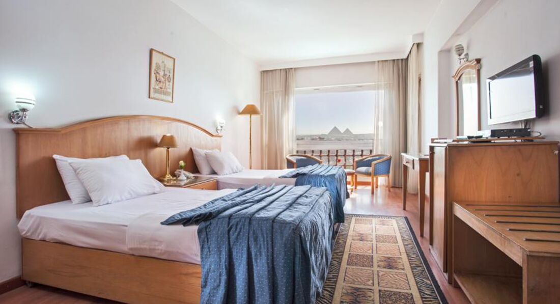 З тераси та з усіх номерів готелю відкривається чудовий краєвид на 3 піраміди. На території 4-зіркового готелю Plaza Pyramids є відкритий басейн. Гіза - чудовий вибір, якщо вам цікаві пам'ятники, музеї та історія.