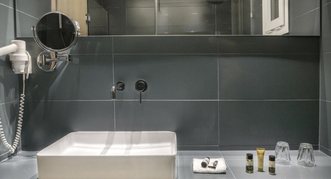 • ванна кімната з душовою кабіною, феном та туалетним приладдям.
