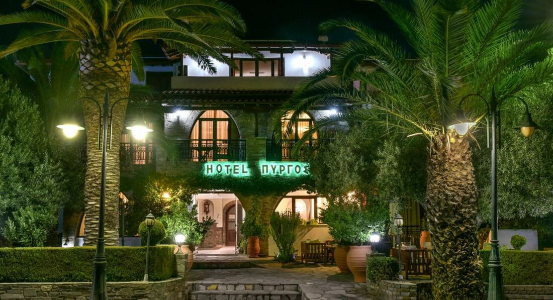 Pyrgos – сімейний готель, який приймає туристів із 1979 року. Готель був реконструйований у 2006 році, у його дизайні та інтер'єрі поєдналися сучасні елементи з деталями неокласичного стилю. Цей готель, безперечно, зможе задовольнити запити будь-якого відпочиваючого, пропонуючи спокійний та затишний відпочинок.