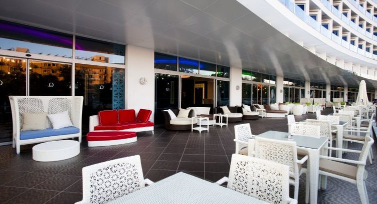 Отель не выше 3+, не говоря об ультре ! Территории нет , количество номеров не соответствует территории!!! Мы приехали 26 мая людей было не так много, но 31 мая начался просто ад !!!! Отдвхающие , как сельди в бочке. Очереди везде - ресторан , бар на пляже , и это очередь не из пяти человек - 15, 20, про мороженое с 14.00 отдельно - можно до 16.00 в очереди простоять . У горок бар вообще не функционирует. На обед и ужин мы не стали ходить, потому что пока стоишь с тарелкой то в одной , то в другой очереди , кушать уже не хочешь. На ужине мест за столами не хватает , персонал простит на улицу ..ультра отель... На пляже такая же ситуация, лежаков не хватает , за них война , на успел к семи утра и все , ты можешь полежать на крупной гальке. Анимация ужасна, детски вообще нет ! Дискотека ужасная, аниматоры не включают , что хотят отдыхающие. ! Отель не о чем , тем более об ультре ,. У нас из номера пропала ветровка. Шампанское только в одном баре, но вечером его уже нет. Но два момента положитьных есть - море и солнце!!!
