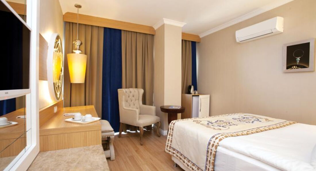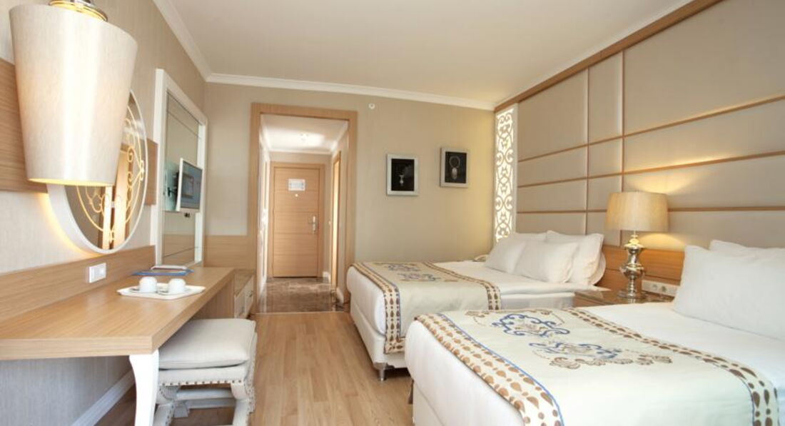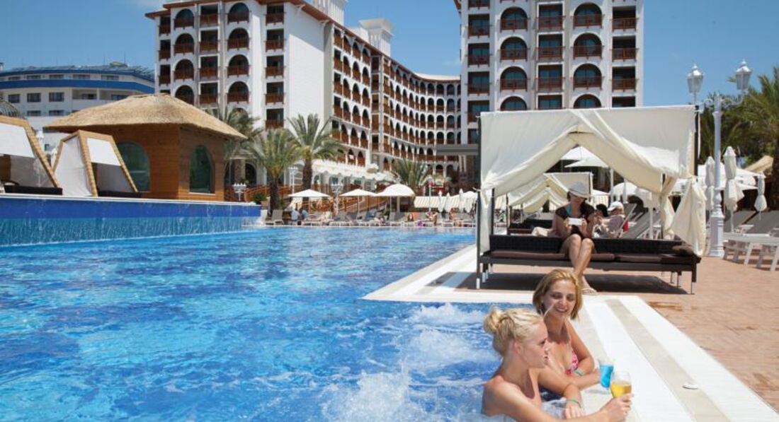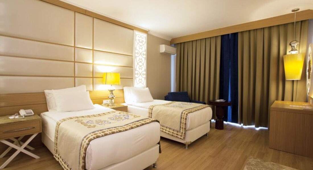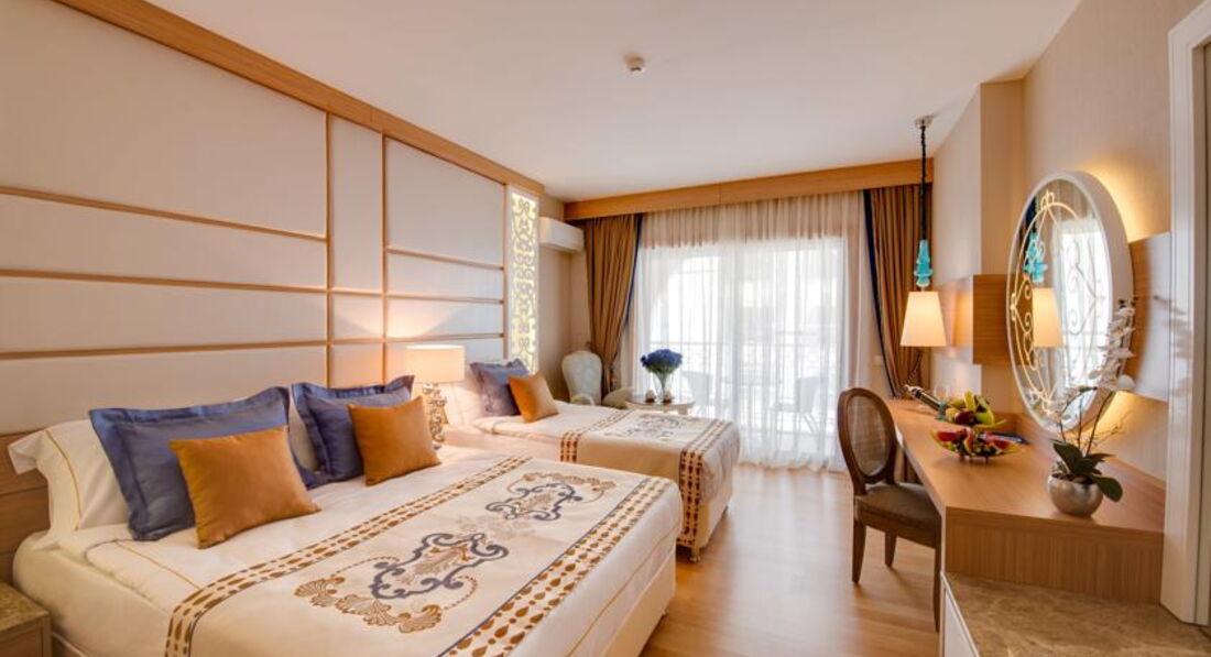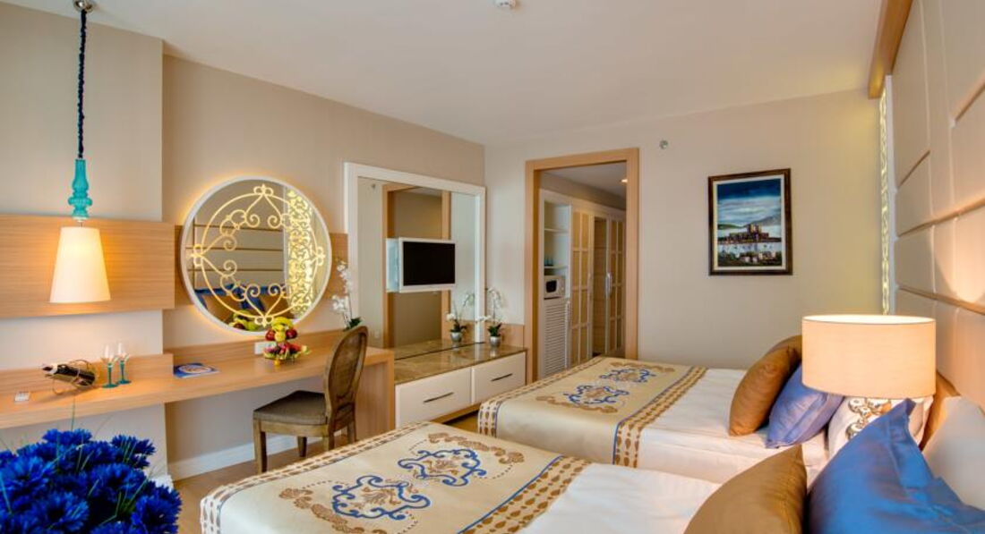 Отдыхали 10 дней с 16 июня 2015 г. Все очень понравилось. Поселили в трехместном стандарте на пятом этаже, окно на соседний отель с боковым видом на море. Было тихо и спокойно. Хорошее разнообразное питание 23 часа в сутки, много разных фруктов и сладостей. Персонал отеля строго контролирует работу обслуживающего персонала, если вас что то не устраивает, всегда можно обратиться к Анне, которая поможет решить все ваши проблемы. Отель с небольшой территорией, но все очень компактно расположено. Хороший чистый бассейн, купание в море с пантона. Активная анимация, по понедельникам "турецкая ночь". Есть приличная парикмахерская, Треноженный зал, парные, хамам, закрытый бассейн. Очень красивый интерьер отеля в марокканском стиле. Много разных гостиных зон, есть кондитерская, где можно заказать вкусный кофе или чай с пирожными и др. сладостями. Алкогольные напитки тоже в норме, я пила белис, коктейли и бренди, муж виски, вино не пробовали. Хочу отметить работу официантов, очень доброжелательные, исполнительные, быстро обслуживают и накрывают столы. Вообще в отеле всем хватает места: в ресторане, на пляже, у бассейна всегда есть свободные места. Рекомендую этот отель для отдыха!