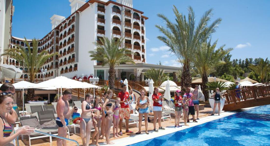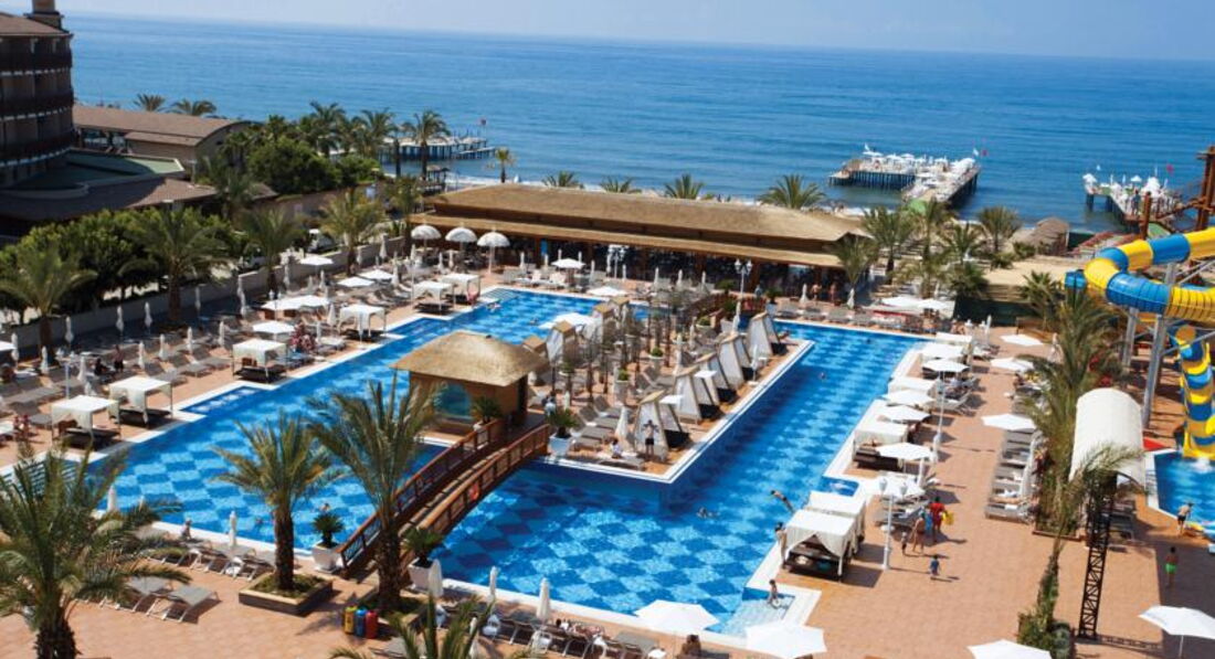 Тур оператор "анекс тур", не понравился! Путевка по идее была с 13 по 23 сентября, прилетели 13 сентября в 19-25 ; в автобус сели в 20-00, а в отель приехали в 23-00!!! В ночь отъезда забрали в 3-15, дважды задержали вылет , вместо 8-00 сначала сказали в 8-45, а вылетели в 9-30. Экскурсии это тоже обман! Сам отпуск понравился , отель хороший, чистый. Персонал вежливый и улыбчивый. Питание разнообразное, есть детский и диет стол. Правда анимация слабая; но нам это было не столь важно. Вход в море с пирса, т.к. Берег это вулканическая плита и с детками там опасно. Если пройти дальше , то можно заходить с берега. Бассейн чистый, не глубокий : основной 150 см; детский 35 или 45 см; бассейн с горками (4 Горки) 125 см. Были дни живой музыки ; очень понравилось))). Кондитерская - там глаза разбегаются; все вкусно и приветливый персонал. Есть платные шезлонги( палатки) 10$ день. Но думаю в них особой необходимости нет. Рестораны аля'карт, были в мексиканском ; понравился только десерт - жареное мороженное. Да и в отеле очень много европейцев; семей из Казахстана было может 3-4 вместе с нами; да и россиян не так много. За то в один момент украинцы приехали в большом количестве. Так же мы попали на праздник и в отеле было много турков; очень много детей. Да и фотограф хороший, который с бородой.