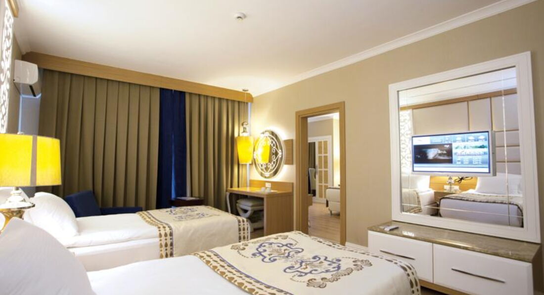Номер в который нас поселили был неплохим, с видом на море, разделен на две части в нем три кровати, в первой части номера большая двуспальная, и за раздвижными дверьми, которые делят комнату, есть две односпальные кровати. Хороший номер для проживания с детьми или вариант семья+бабушка+ребенок. Единственное, что меня очень расстраивало, это то что поесть, в бассейн, в спортзал, за полотенцами и остальными нашими нуждами нужно постоянно ходить на территорию Quattro Beach, это напоминает ситуацию, когда у Вас перекрыли воду и Вы каждый день ходите в соседний дом к родителям у которых бойлер)), в общем неудобно особенно по жаре. Но мы начали привыкать, и даже смирились с постоянным кочевничеством на территорию Quattro Beach. Если бы не одна ситуация. Через несколько несколько дней мы попросили у менеджера подсказать нам как включить свет в спортзале нашего отеля, чтобы не ходить в Quattro, вместо ответа на нашу просьбу он предложил нам переселиться в Quattro Beach, но мы были в замешательстве, поскольку мы уже разложили чемоданы и обосновались, и нам в начале отдыха сказали что мест в Quattro нет. В общем мы сказали, что не будем переселяться, чтобы не тратить полдня отдыха на выселение\заселение и запоковывание чемодана заново. Но каким было наше удивление, когда вернувшись по жаре после тренировки в свой номер мы не смогли его открыть( Мы снова пошли на рецепцию, где нас попросили подождать менеджер, в общем уставшие и замученные с одной мечтой о душе, ждали полчаса менеджера в лобби.Когда он все-таки соизволил прийти опять пытался нам что-то объяснить на своем ломаном английском, пока не позвал Guest manager она нам объяснила, что они решили закрыть Club Dem, и переселись гостей в Quattro Beach, и нам должны были сообщить заранее чтобы мы собрали вещи?!!Короче мы были реально в шоке, от нелогичности поступков этого персонала, и как они издеваются над своими гостями. Нам конечно ничего не сообщили, но за день до этого нам воткнули в двери стандартный бланк отеля с нашим номеров с приглашение на прием к врачу, мы подумали что это по ошибке поскольку мы к врачу не обращались, как позже выяснилось это и было то оповещение о переселении, мы показали его Guest manager, ну и она объяснила своим коллегам, что это бред а не сообщение, оказалось они пользуются онлайн-переводчиком, чтобы писать гостям. Вообщем возмущению моему нет предела, ехав в 5звездочный отель вряд ли можно представить, что с Ваши так будут обращаться. Кстати, мы не одни такие жертвы системы)), когда мы стояли на рецепции, подходил мужчина в полном недоумении, поскольку доплатил за номер seaview, но его конечно же поселили совершенно в другой.