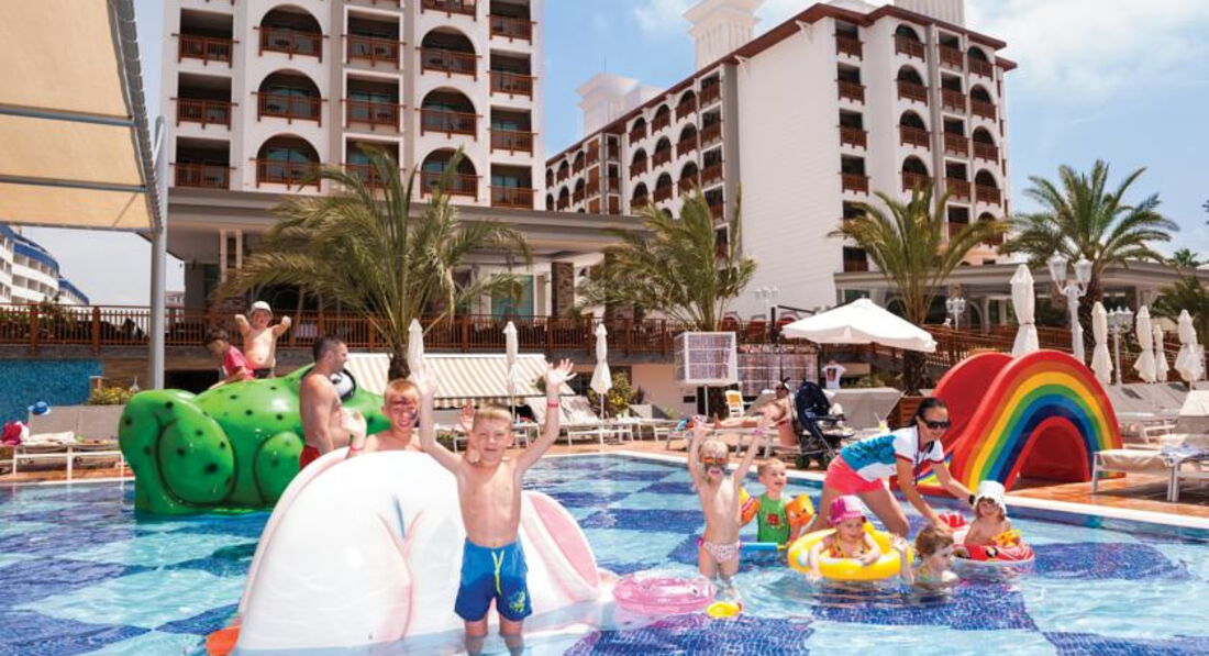 Отель больше тусовочный,для молодежи.Детский бассейн есть,неплохой.Но детского городка нет.Детская анимация,я считаю,никакая.