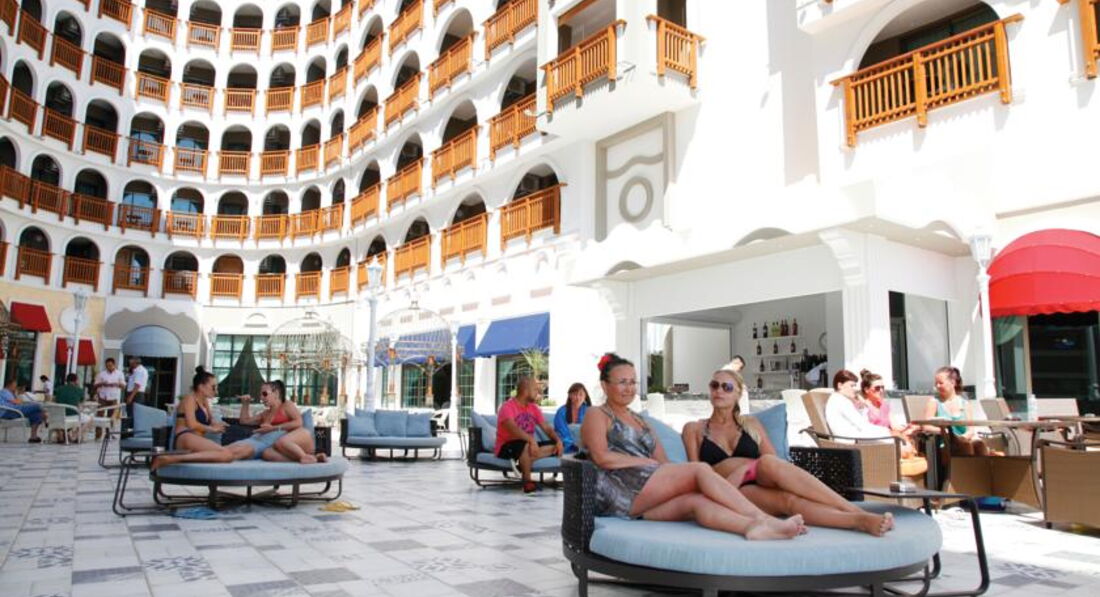К отелю, сервису, еде, уборке претензий нет, все супер. Пишу этот отзыв для того чтоб сюда не попали ребята любящие потусить, так как этот отель не для них. Анимация для взрослых - НЕТ. Дискотеки на территории отеля они как бы есть но работают всего с 12 до 2 и то играет 5 песен по кругу. после 12 шуметь нельзя, музыку слушать нельзя, в бассейне купаться нельзя. Если не соблюдать жесткие правила относительно тишины то вас выселяют в отель 3*. Молодежи практически нет, а если и есть то это или молодожены или влюбленные парочки. Часть лежаков платные - 10$ день.