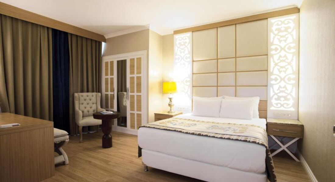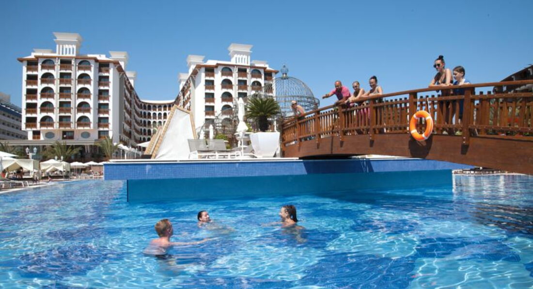 Посетили отель в мае 2017 года, если одним словом, то это божественно!!! Помимо того что там все новое, так еще и все сделано с умом. Отличные номера, шикарное все здание. Питание выше всяких похвал, все свежее и вкусное. Деликатесов не было, но всегда была рыба, индейка, курица, говядина, салаты с креветками. Неимоверное количество сладостей и фруктов. В кондитерской при вас варят турецкий кофе. Великолепный бассейн, в котором реально можно плавать, а не просто окунуться. Пляж большой, с пирса плавать удобно, а вот заход в море с берега не очень. Турецкая ночь в этом отеле проходит в понедельник, выносили красивущий корабль-мороженое, и естественно были турецкие танцы. В барах отеля делают всевозможные коктейли, алкогольные и безалкогольные. Анимация была очень средненькая, но это начало сезона. Обслуживающий персонал в отеле просто трудяжки, свои услуги все предлагают, но очень ненавязчиво, без доставания и вымогательства. Отель полностью заслуживает оценки отлично. Всем рекомендую!!!!!