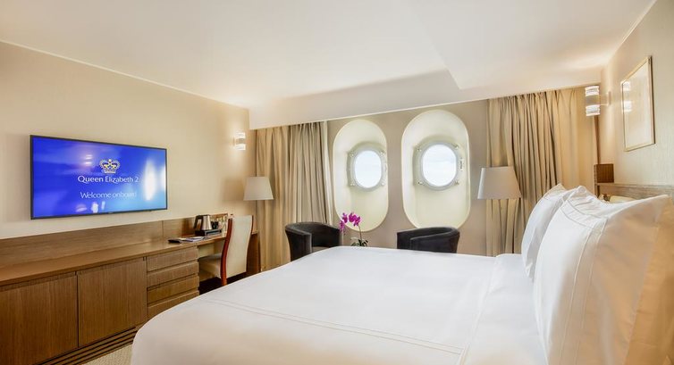 Перший плавучий готель Queen Elizabeth 2 розташований в районі Міна-Рашид, який вважається найвідомішим у світі океанським лайнером. В даний час в готелі проводяться різні кулінарні та нічні заходи. Готель Queen Elizabeth 2 розташований на вулиці Міна Рашид в Дубаї, поряд з найпопулярнішими пам'ятками Дубаї, включаючи хмарочос Бурдж-Халіфа, торговий центр Dubai Mall, Дубайський міжнародний фінансовий центр (DIFC) і Всесвітній торговий центр Дубая. Грандіозний запуск готелю QE2 відбудеться у жовтні 2018 року, до того часу він перебуває у фазі відкриття. До жовтня 2018 року деякі приміщення готелю будуть закриті для відвідування, оскільки в них ще проводяться ремонтні роботи, у тому числі спа - салон, тренажерний зал та басейн. Queen Elizabeth II спустили на воду в 1967 році, відтоді він вважався найвідомішим у світі круїзним лайнером, на борту якого неодноразово подорожували знаменитості та монархи. Після списання готельна мережа CFC викупила судно та переправила до ОАЕ.