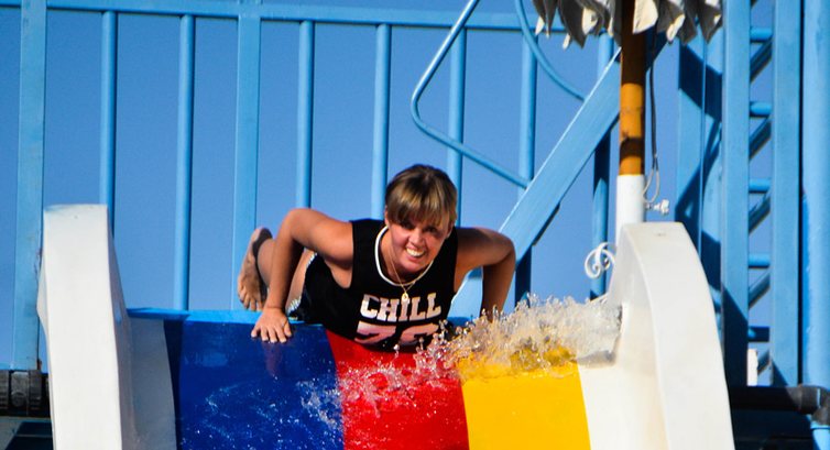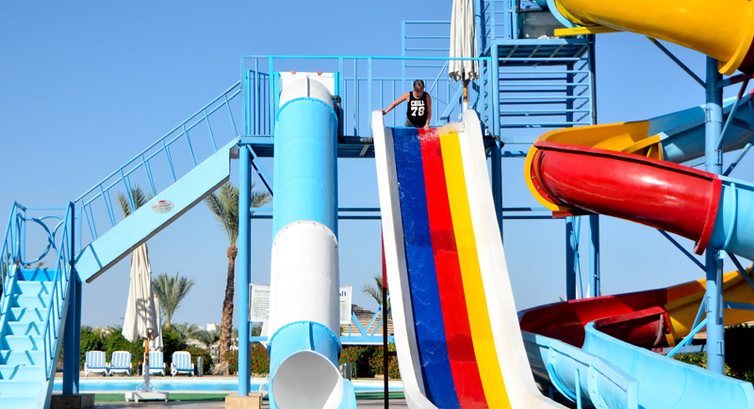 В верхней части отеля есть аквапарк, работающий, но людей нет.