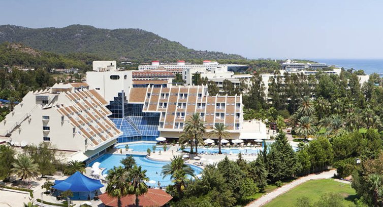 Вчера только приехали из этого отеля! Сразу скажу в Турции были в первый раз, туристы мы непритязательные, мелочи нас не интерисуют. Общее впечатление об отеле и об отдыхе в целом более чем положительное! Великолепные виды на горы, чистое тёплое море, вкусная еда и отличная анимация! Хорошее соотношение цена-качество! Отель полностью русскоговорящий, анимация русские девочки, очень приветливые, детки в мини клубе тоже по-моему были очень довольны) Еда вся вкусная и свежая, мне лично очень понравилась, моему молодому человеку мяса было маловато (свинины, говядины), но в общем наедались каждый день) мороженное, пироженное, снек бар - никаких очередей, всего много и вкусно) В ресторан а ля карт попали только один раз, так как надо было записываться с утра и время для записи всего час(. Из напитков мы пили вино пиво и мохито, очень очень вкусные! Крепкие напитки не употребляем,поэтому ничего про них сказать не могу. Жили в бунгало, номера немного староваты, но нормальные, все работало, полотенца меняли каждый день, убирались тоже) единственный минус это шум из соседнего отеля, вечером дискотека, днём музыка и шум от электромобилей! Нам это не сильно мешало, но тем кто с маленькими детьми, думаю это не понравится. В отеле была русскоговрчщая медсестра, это большой плюс) Территория очень большая, чистая и ухоженная, было где прогуляться! В общем, все понравилось!