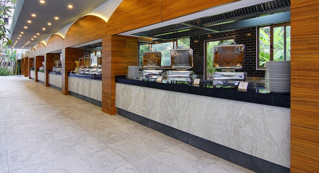 Кухня так же удивила, учитывая тот факт, что отель работал последние недели. Все вкусно. Выбор выпечки, сладостей. Большое колличество фруктов и овощей.