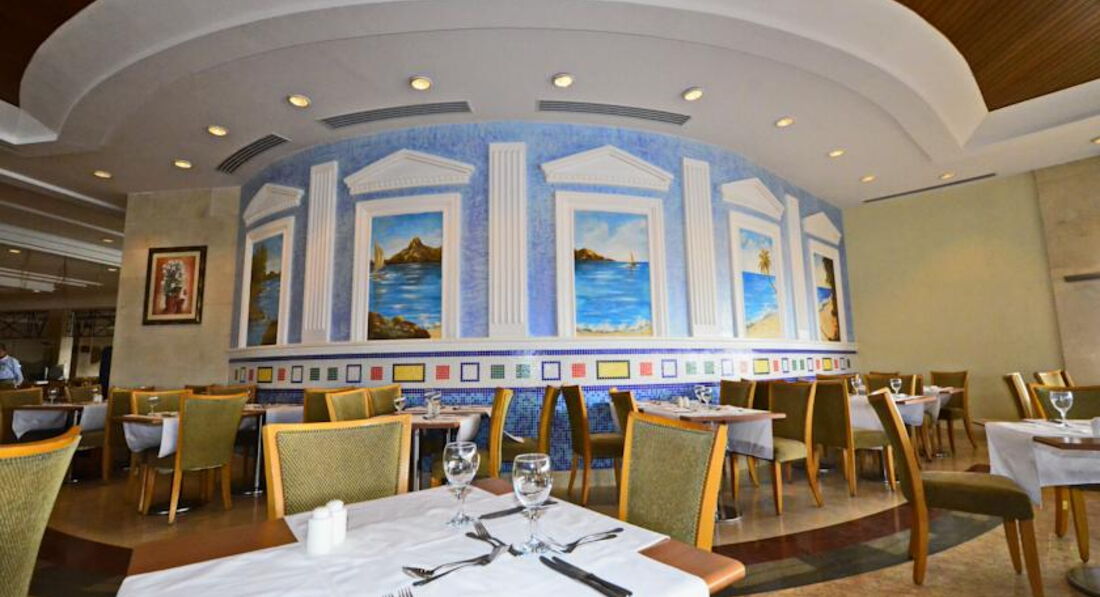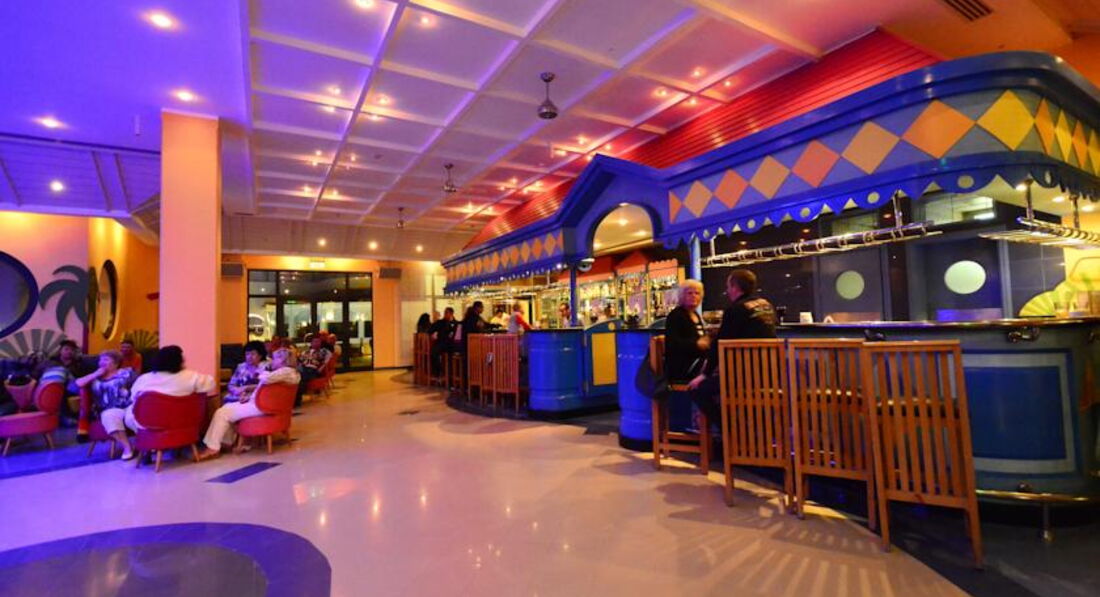 Бари: Lobby Piano Lounge (платно): лобі-бар, години роботи з 15:00-00:00, пропонуються імпортні алкогольні напої та сигари, жива музика (піаніно). The Pub: години роботи з 11:00-02:00, спорт-бар. Caribbean Cafe Bar: працює цілодобово, легкий сніданок, пропонуються легкі закуски та місцеві напої, з 00:00 проводиться дискотека. Panorama Terrace: відкрита тераса з панорамним краєвидом на море, працює з 17:00-02:00; легкий сніданок, надаються легкі закуски та місцеві напої. Arena Bar: годинник роботи з 17:00-00:00, жива музика, шоу. Oriental Cafe (платно): пропонуються чай, кава, кальян, години роботи з 17:00 – 00:00. Бар біля басейну - Leisure Pool Snack Bar: пропонуються закуски та місцеві напої, відкритий з 10:00 до 17:00. Relax Pool Bar: пропонуються гарячі та прохолодні напої, свіжі соки, континентальний сніданок, години роботи з 08:00-18:00, закуски пропонуються з 11:00-15:00, тістечко з 15:00-17:00. Blue Beach Bar: бар розташований на пляжі, працює з 10:00 до 18:00. Energy Bar (платно): вітамін-бар у спа-центрі, години роботи з 10:00-20:00, пропонуються свіжі фруктові та овочеві соки та енергетичні напої. Horizon Snack Bar: години роботи з 10:00-18:00, з 11:00-17:00 пропонуються закуски (піца, паніні).