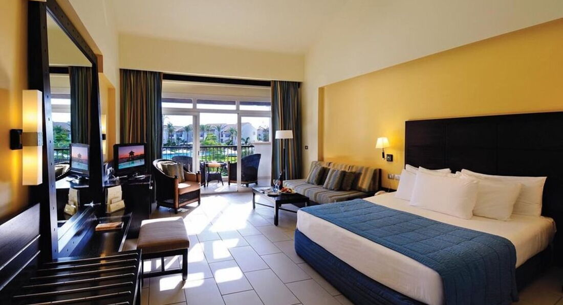 Ездили отдыхать в мае 2017 года в Египет, отдыхом остались очень довольны. Перелет прошел отлично, единственное что не понравилось сильно досматривали в аэропорту. В гостиницу мы добрались быстро, нас встретили и сразу заселили (отлично, что не пришлось долго ждать). Номер понравился, светлый и чистый, новая мебель, удобная кровать, есть плазма, постельное белье белоснежное. Уборка номера была каждый день, во время докладывают туалетные принадлежности: мыло, туалетную бумагу, гель для душа. Территория отеля большая, видно, что тщательно следят за чистотой, много зелени, приятно прогуляться днем и вечером. Кормили очень хорошо, еда была разнообразная, продукты свежие, очень вкусный суп-пюре, большой выбор сладостей. Погода все дни была отличная, ветрено было всего пару дней, температура воздуха 25-38 градуса, купались каждый день. На территории много развлечений . Очень хороший персонал отеля, очень внимательный и приветливые. Отдельное спасибо сотрудникам компании туроператора Join.UP. Были организованы экскурсии на высшем уровне, всегда наши гиды находились рядом, помогали советом.